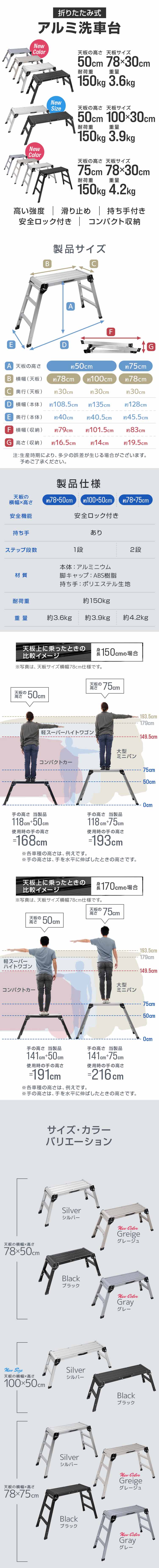 | 足場サイズ(約):78×30cm 使用時の高さ(約):50cm | ||