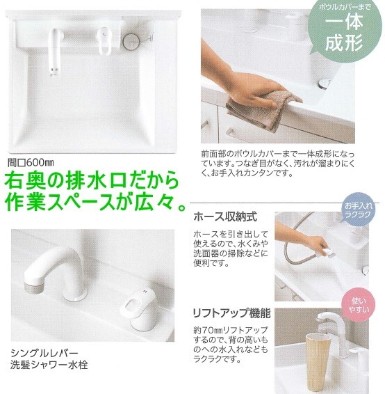 洗面器:ホワイト・樹脂製(アクリル系樹脂)・容量12L 扉カラー:ホワイト