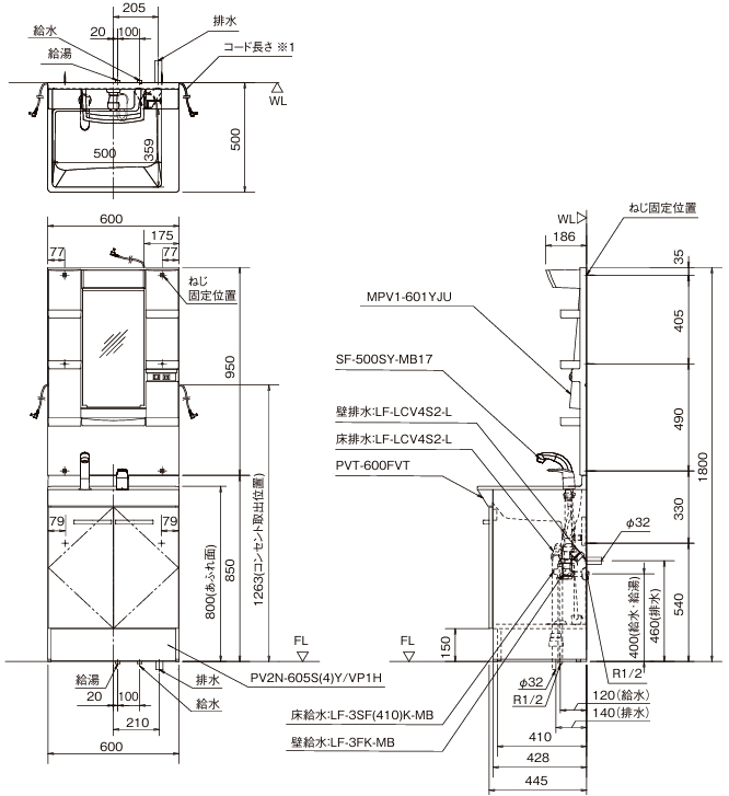 ・PV2N-605S(4)Y/VP1H 洗面化粧台