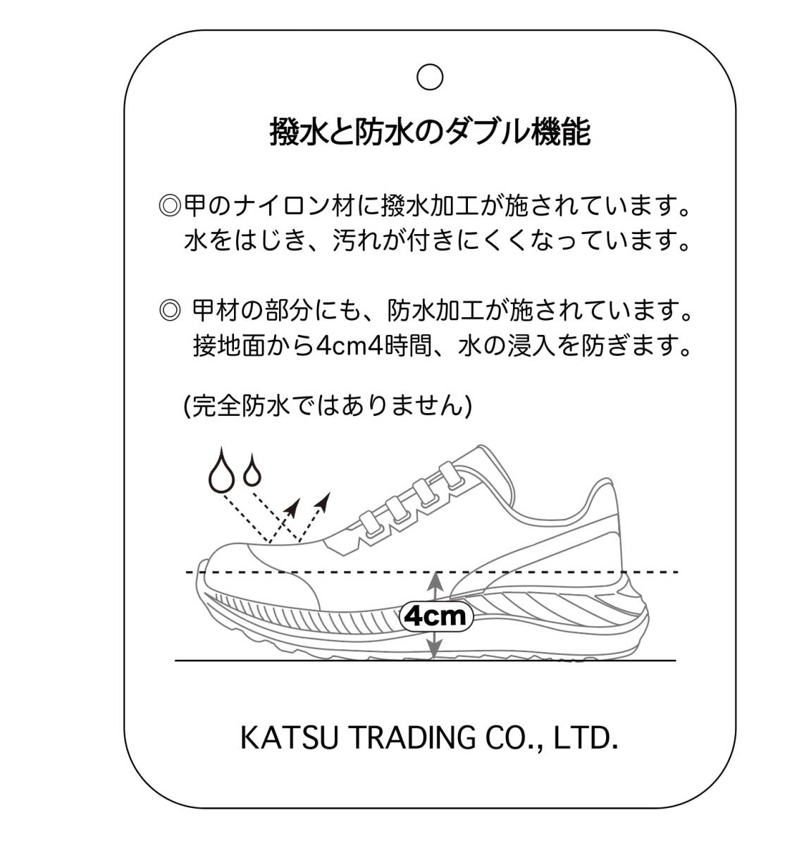 地面から4cm程度に防水機能、甲に撥水加工のある素材なので、多少の雨なら汚れにくくて安心。