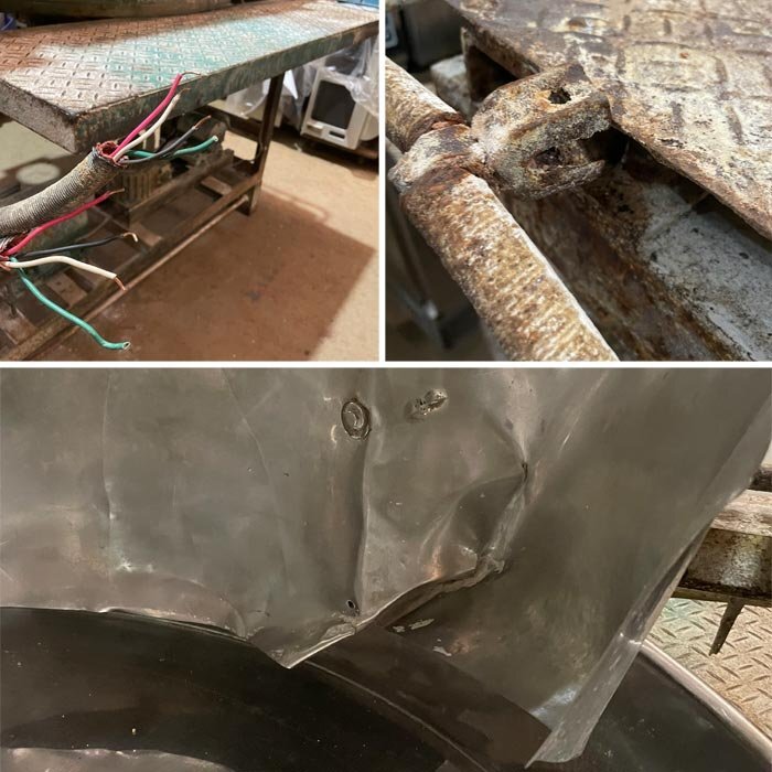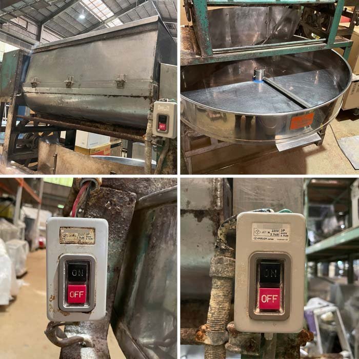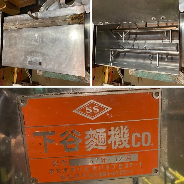 <仕様> 商 品 名 :二段ミキサー メーカー:下谷麺機 型 番:不明 年 式:1982年 寸 法:約 幅 1700mm × 奥行 1600mm × 高さ 2200mm 重 量:約 624kg 電 源:三相200V ヘルツ不明 ※50Hzで動作確認しました。60Hz地域での動作は初期不良対応対象外です。 付 属 品 :写真に掲載されているものが全てとなります。 <動作確認> ・上段及び下段のミキサーが回転することを確認しました。 ※油脂類等の消耗品は初期不良の対応対象外です。 ※実際の食材を使用しての動作確認を行っておりません。 <状態> ・下段のミキサー内部のプレートに歪みがあります。 ・キズ、汚れ、サビ等があります。 ・塗装剥がれがあります。 |