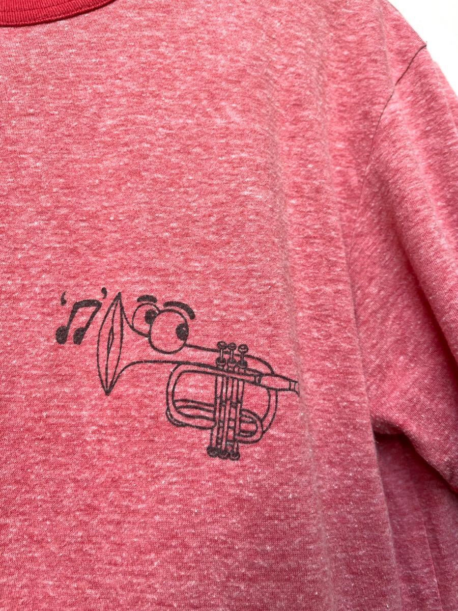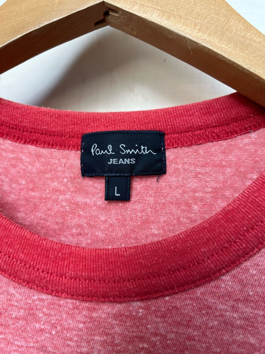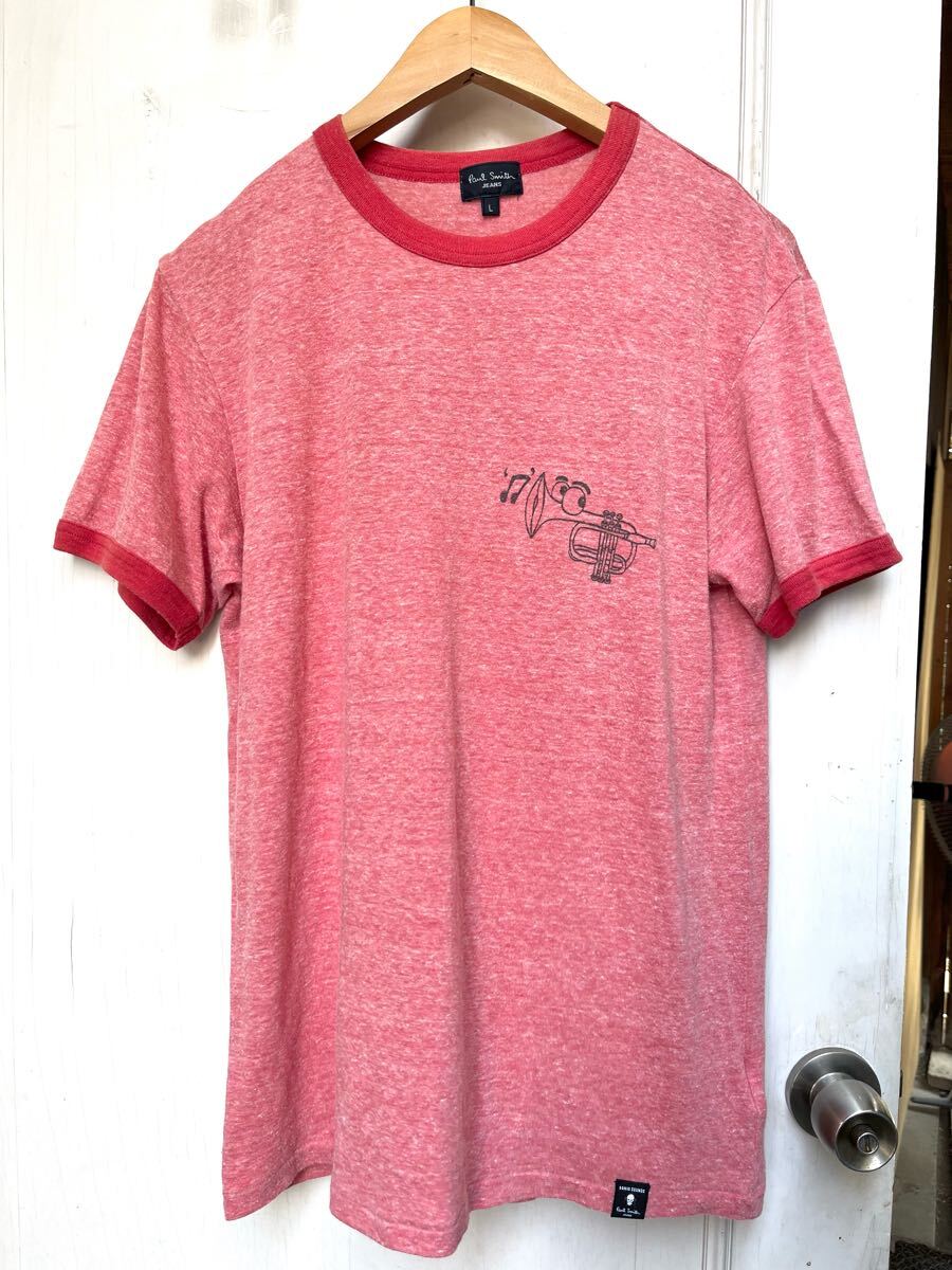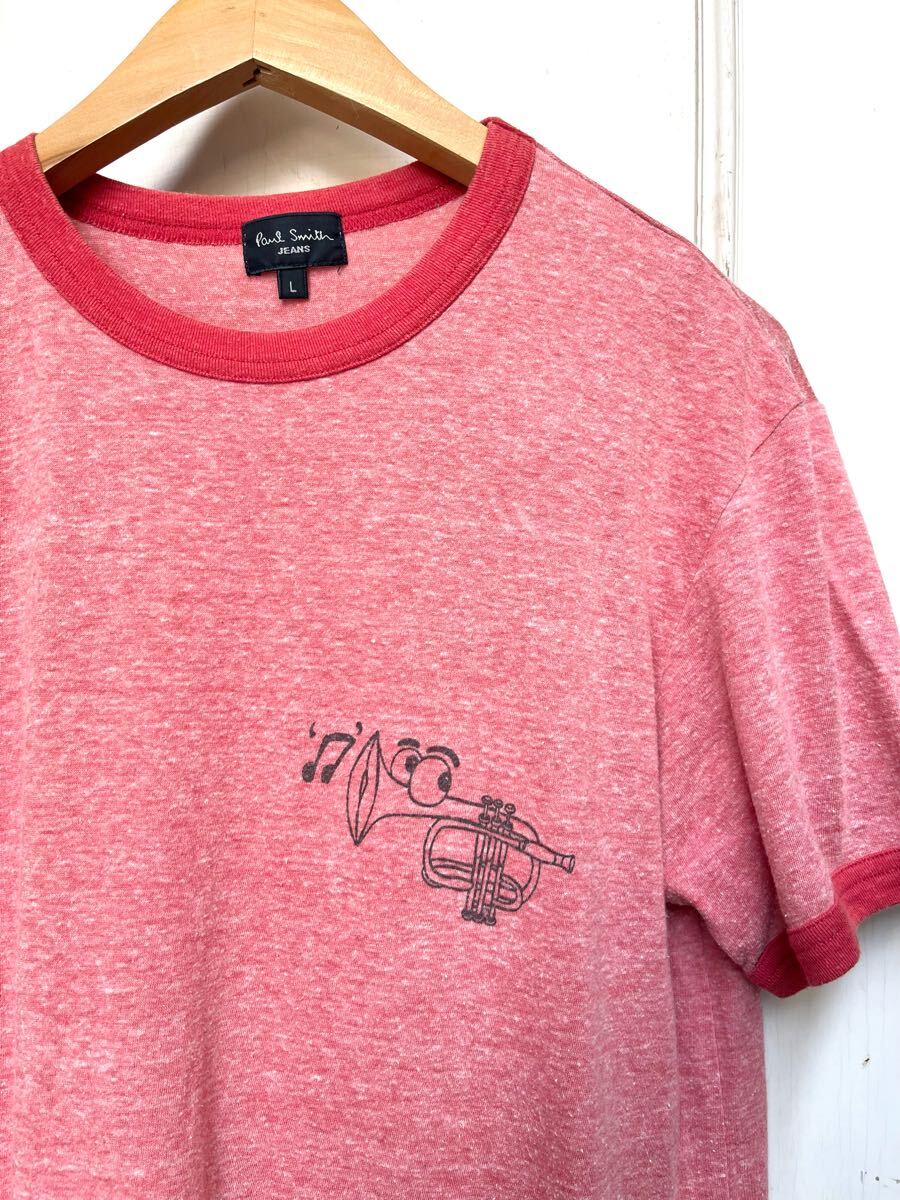 送料¥185ポールスミストランペットプリントリンガーTシャツL ビンテージタイプ