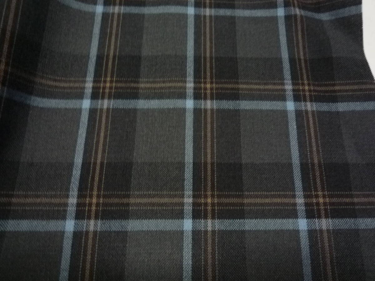 4m(2400円)です。ポリエステル70%、ウール30%でカラーはグレー、ブルー、ブラウン等です。ブルー~ブルーの四角の中の大きさは縦約5cm、横約4.5cmです♪厚さは中肉で風合い良く透け感はありません。パンツ、スカート、ジャケットや他の衣料品等に使えます♪また気になる点がありましたらお気軽に質問してください♪他にもたくさん出品していますのでマイオークションをごらんください(^^↓↓