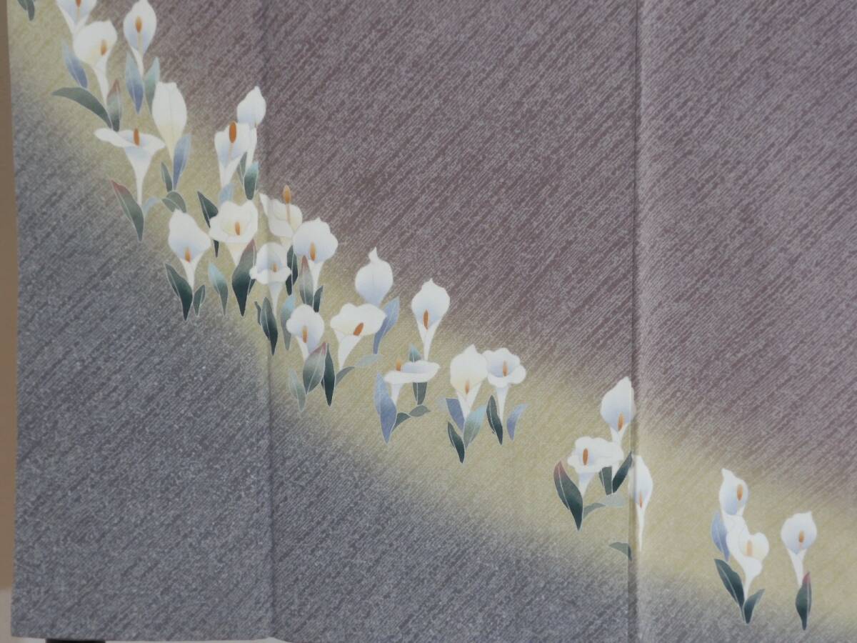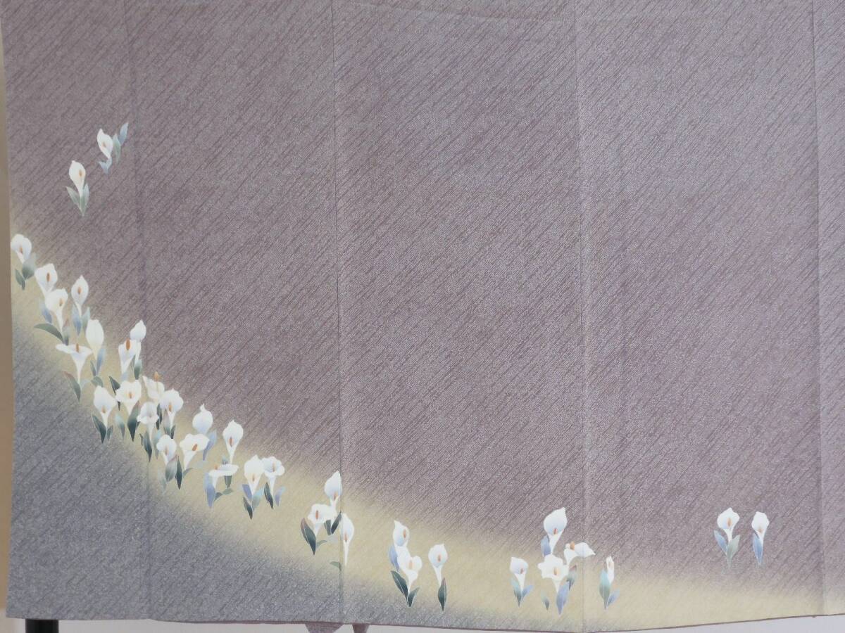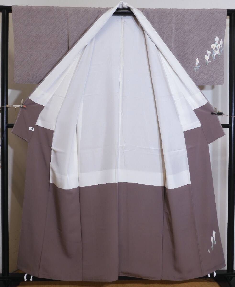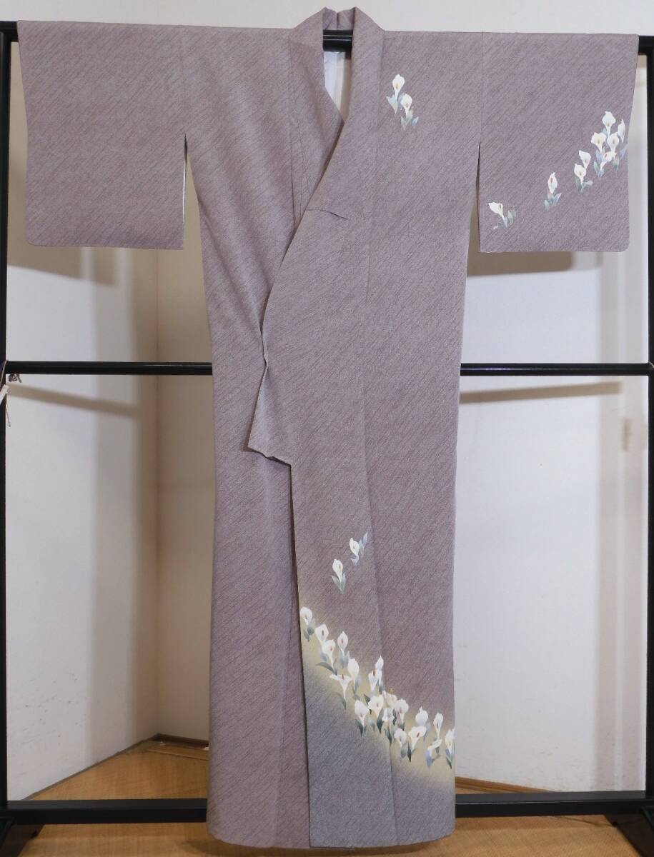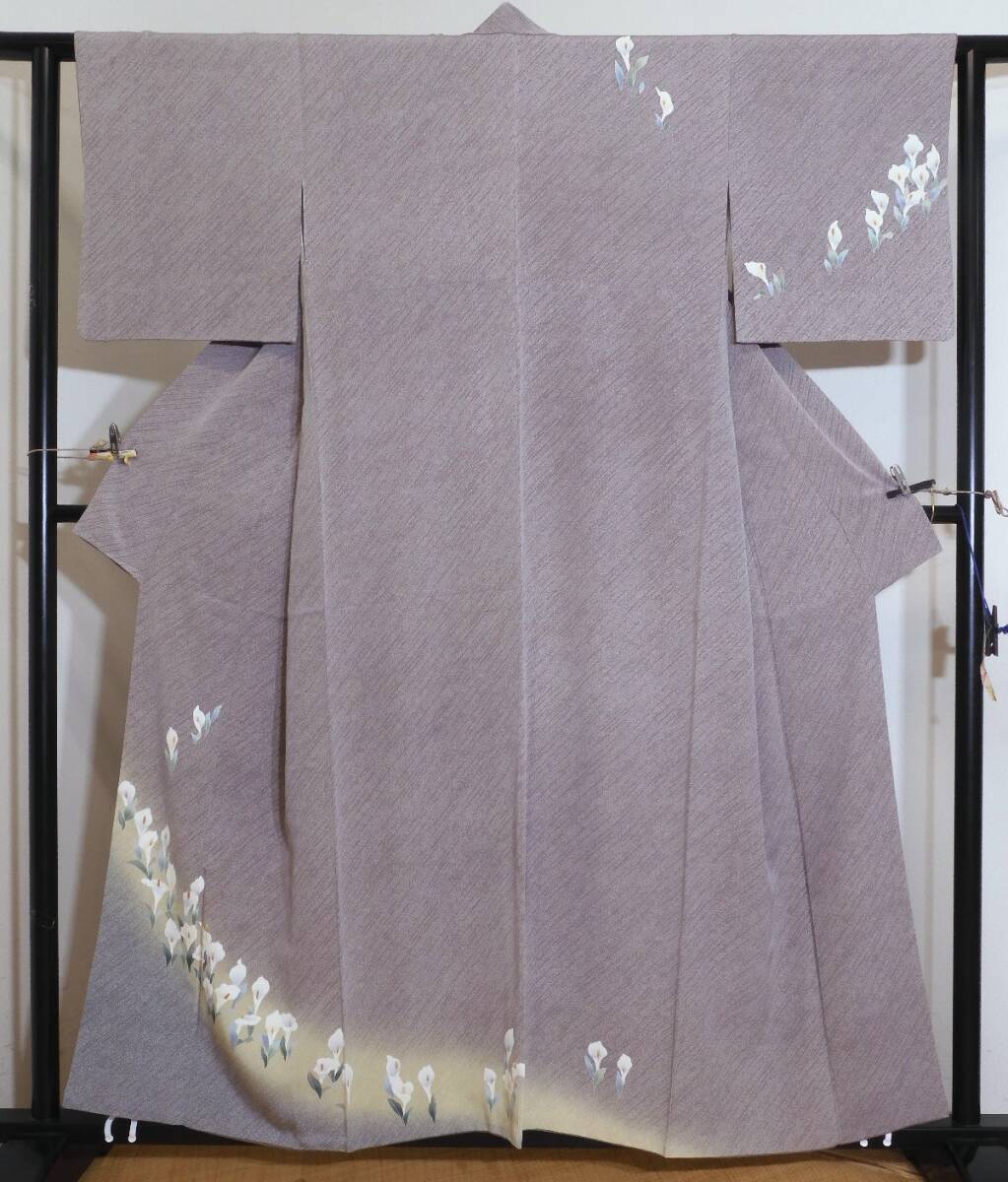 <銀の斧>正絹・水芭蕉の京友禅染訪問着袷着物・和名 鴇鼠色