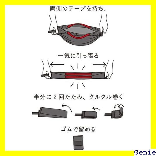 畳んで丸めてゴムバンドで留めると、簡単に小さくまとまります。