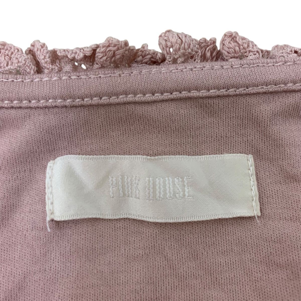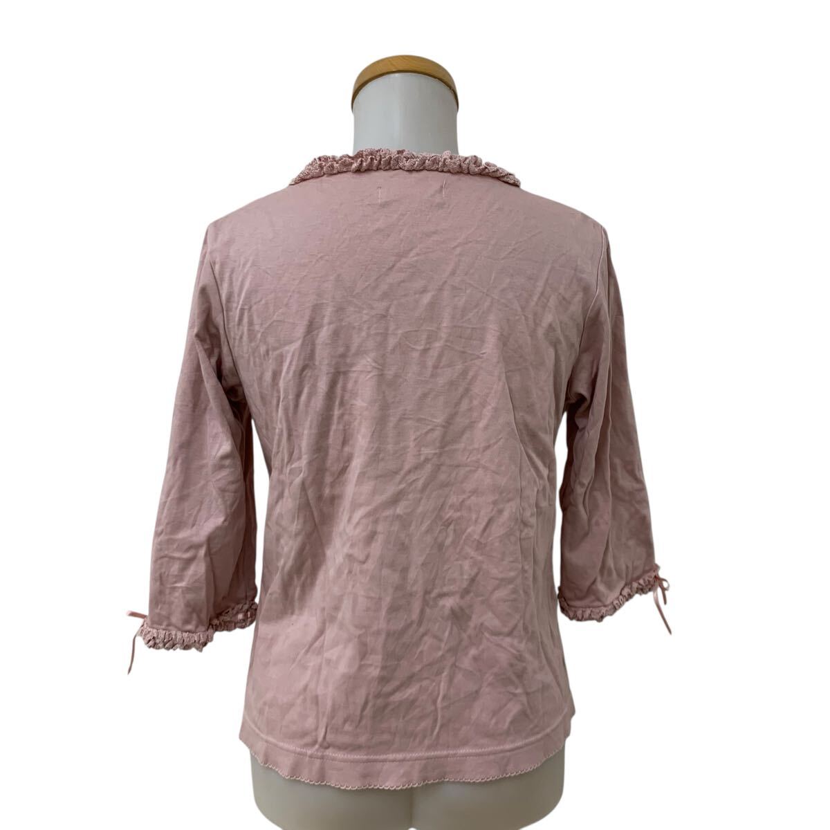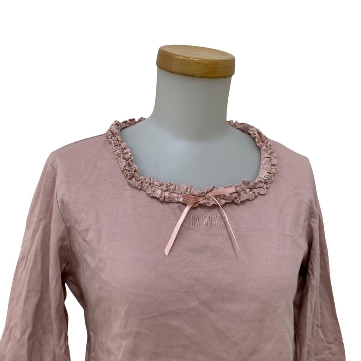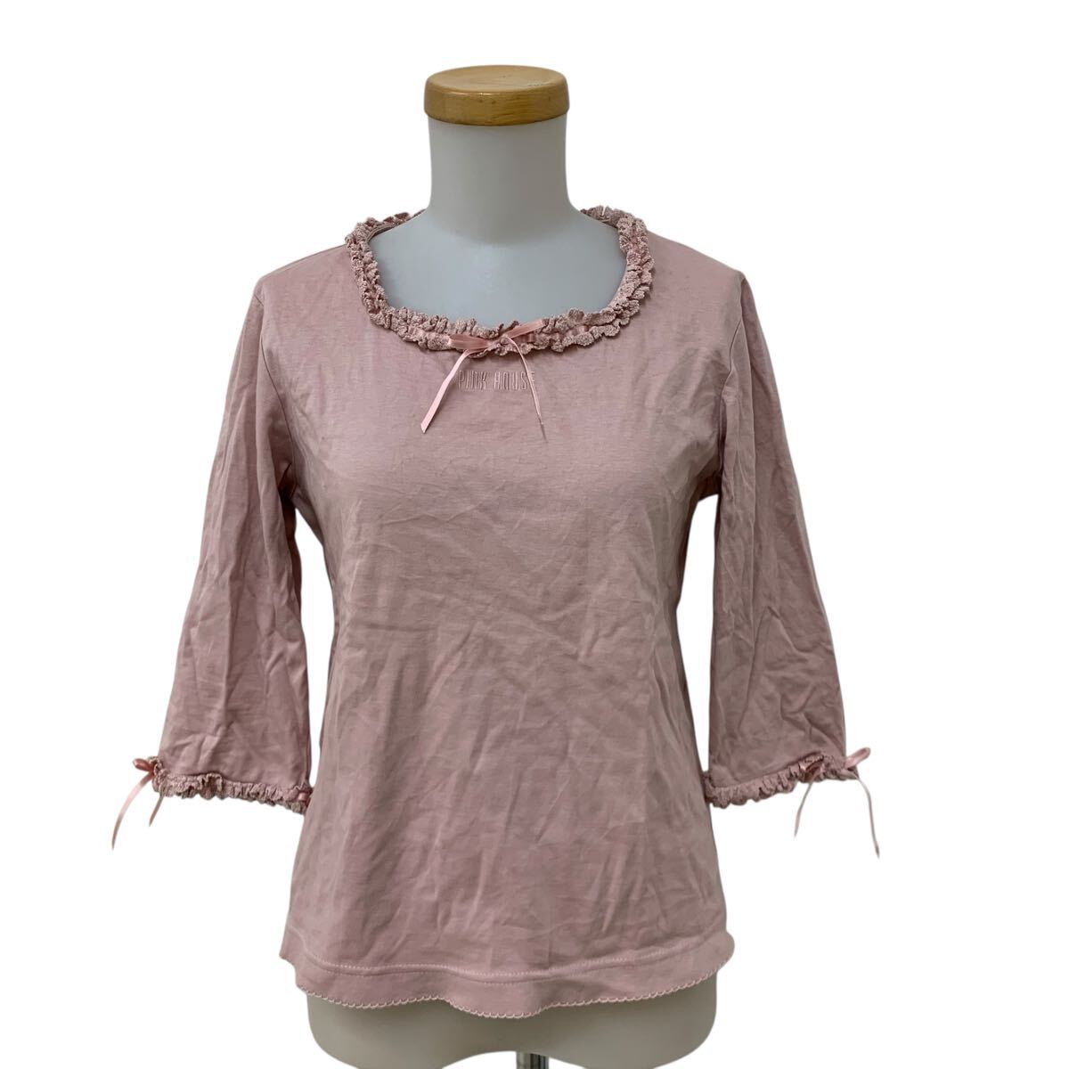 B452-61 PINK HOUSE ピンクハウス カットソー トップス レース リボン デザイン 七分袖 コットン 100% ピンク系 レディース M 日本製