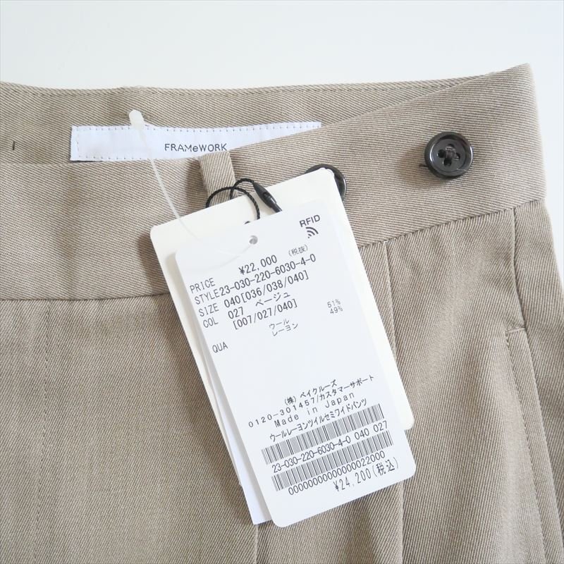 2023AW / 未使用 / FRAMeWORK / ウールレーヨンツイルセミワイドパンツ / 23030220603040 / 2402-0499