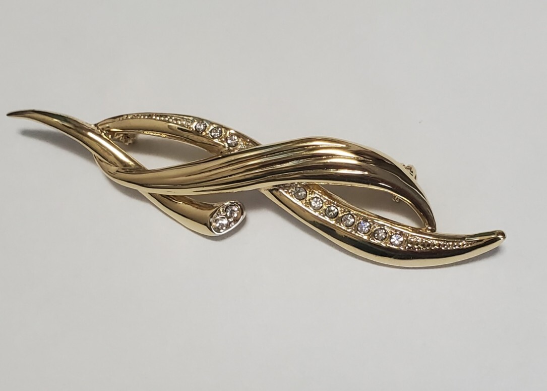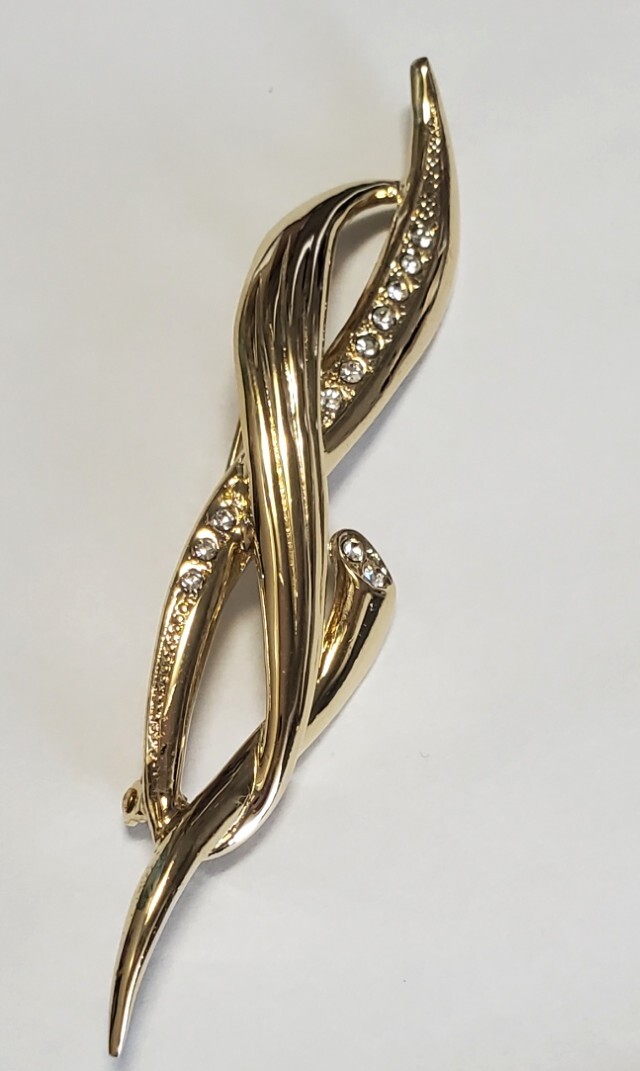 ラインストーン ブローチ  ゴールドカラー  レディース  11,3g