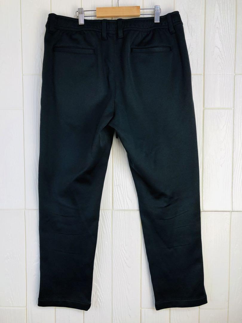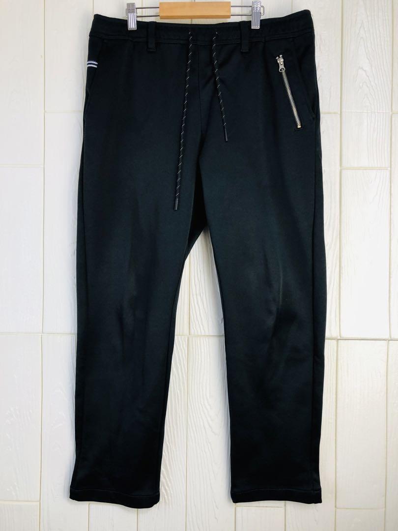 ジッパーポケット付きのカジュアルな黒パンツ。