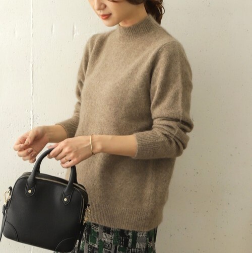 ふんわりとしたヘアリーウールの毛並みが柔らかな印象のニット。