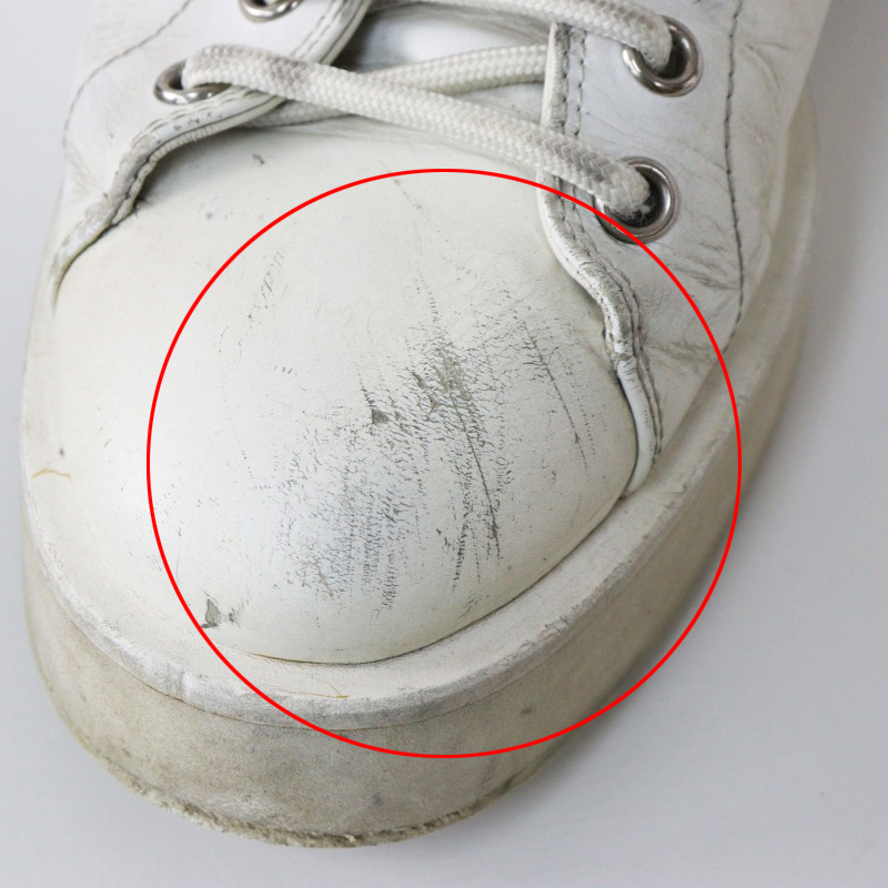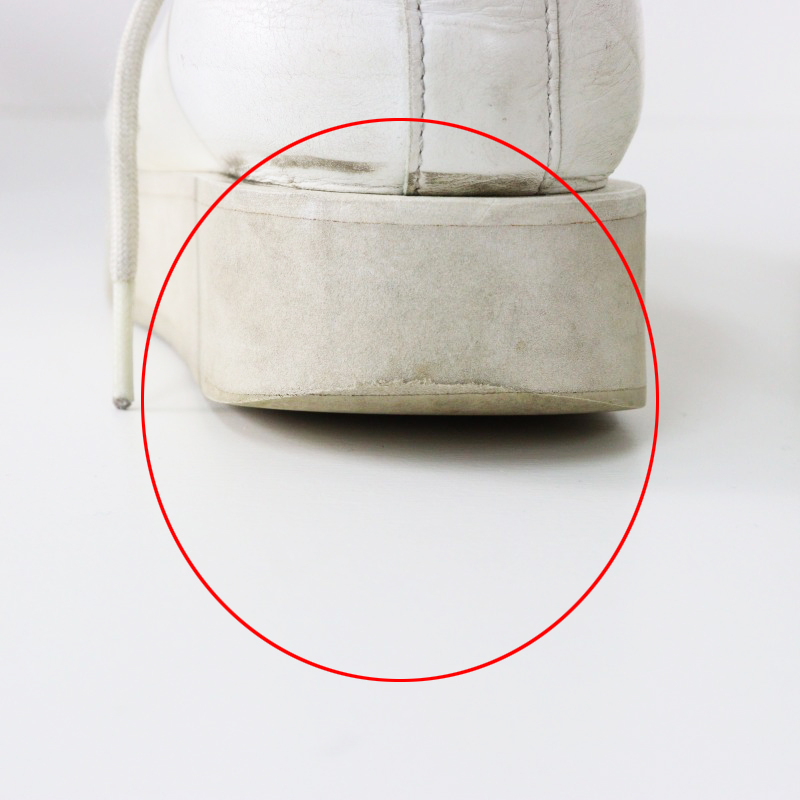 かかとに減りがあります。全体的にスレ汚れが複数見られます。