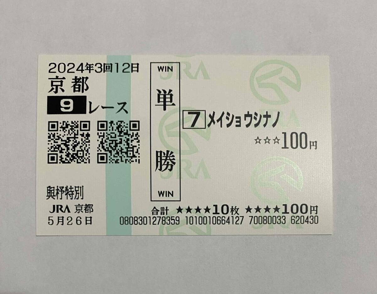 メイショウシナノ 與杼特別 現地単勝馬券 2024年