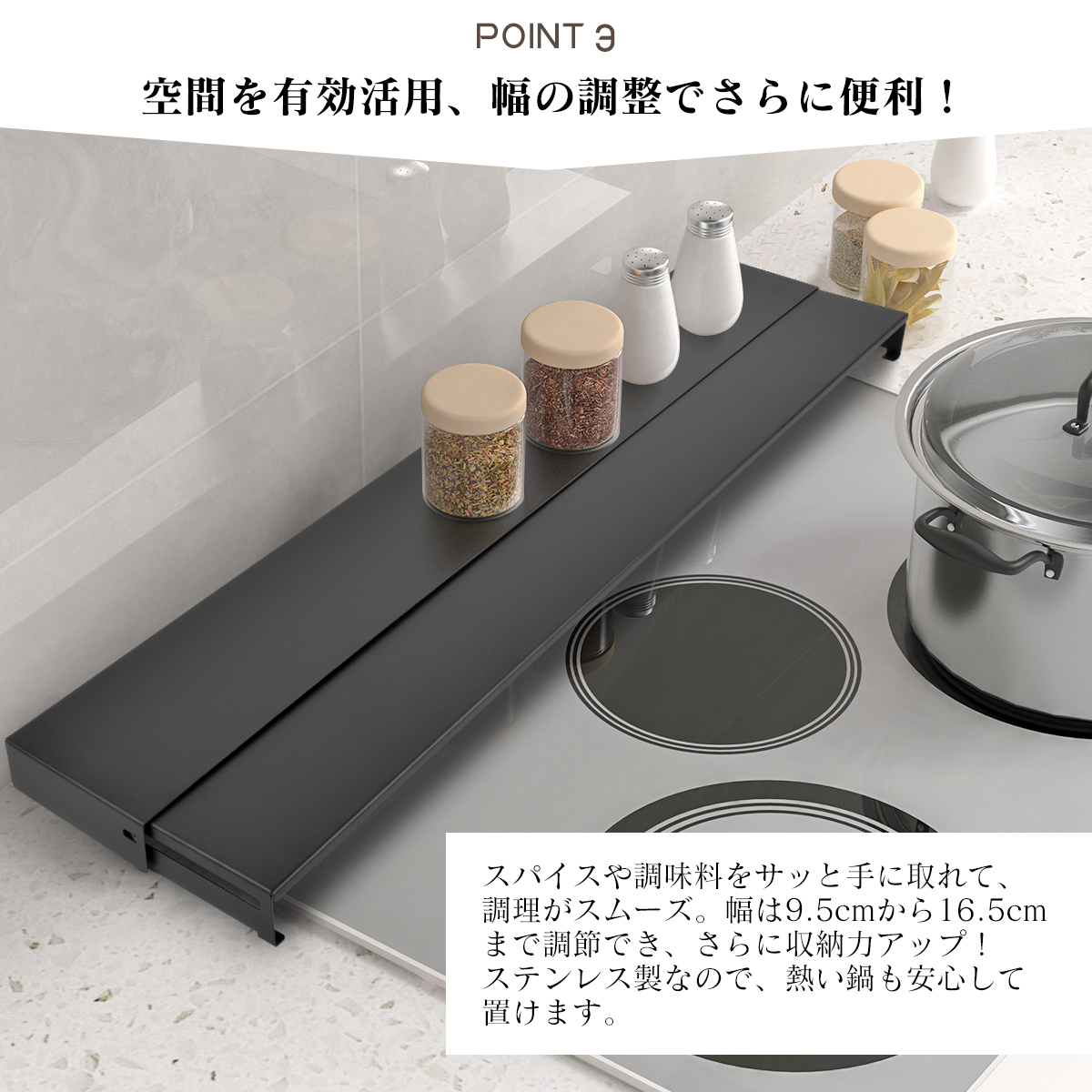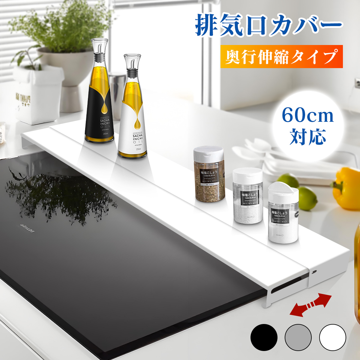 排気口カバー 奥行伸縮 コンロカバー フラット 60cm ih ステンレス レンジガード 油はねガード ihクッキングヒーター 汚れ防止 キッチン
