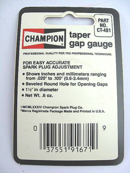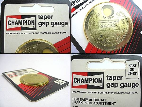 【アメリカの老舗プラグメーカー!CHAMPION チャンピオン スパークプラグのレアな1980年代製のビンテージ GAP NOS デッドストックです!プラグの先端の端子の間にはせて測定する物です!がキーホルダーやネックレスなどで使用してもカッコイイと思います!パッケージ部分が金色に見えますが、日焼けにて金色っぽく見えております。中身は銀色ですのでお待ちがえなくお願い致します!】
