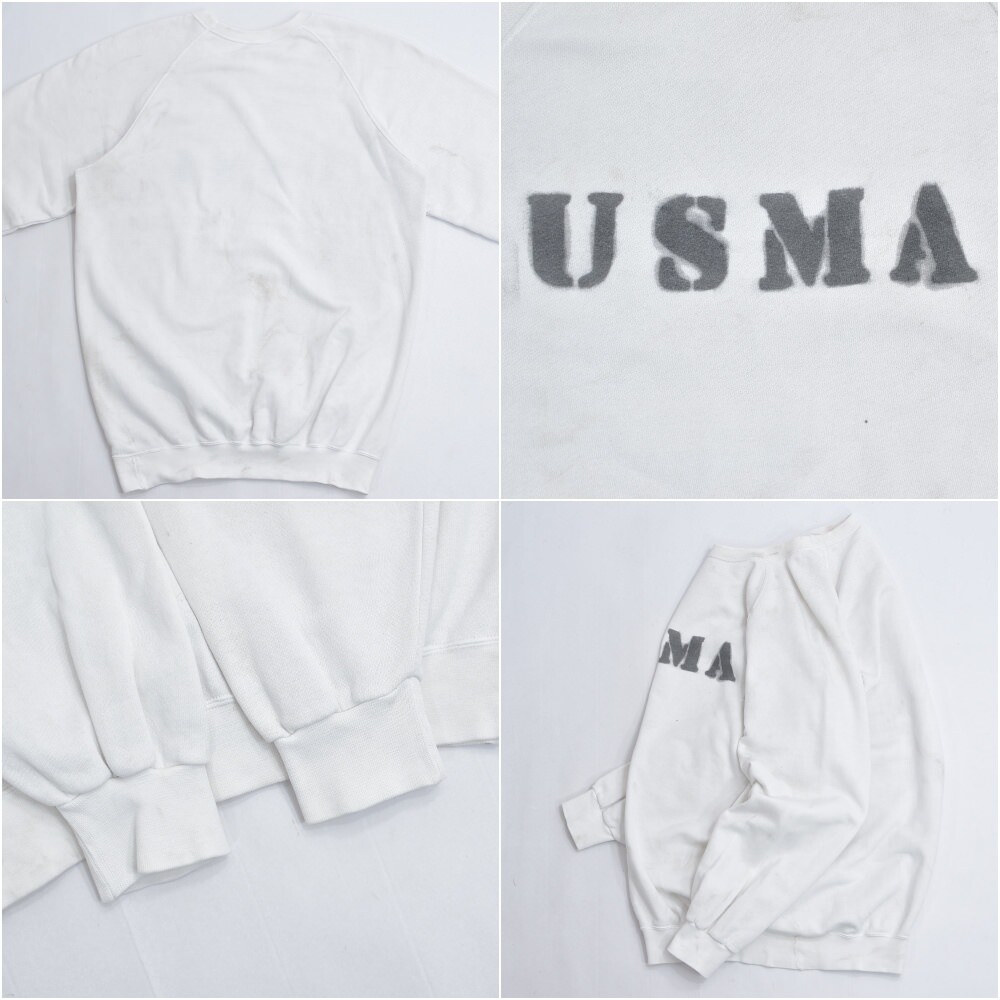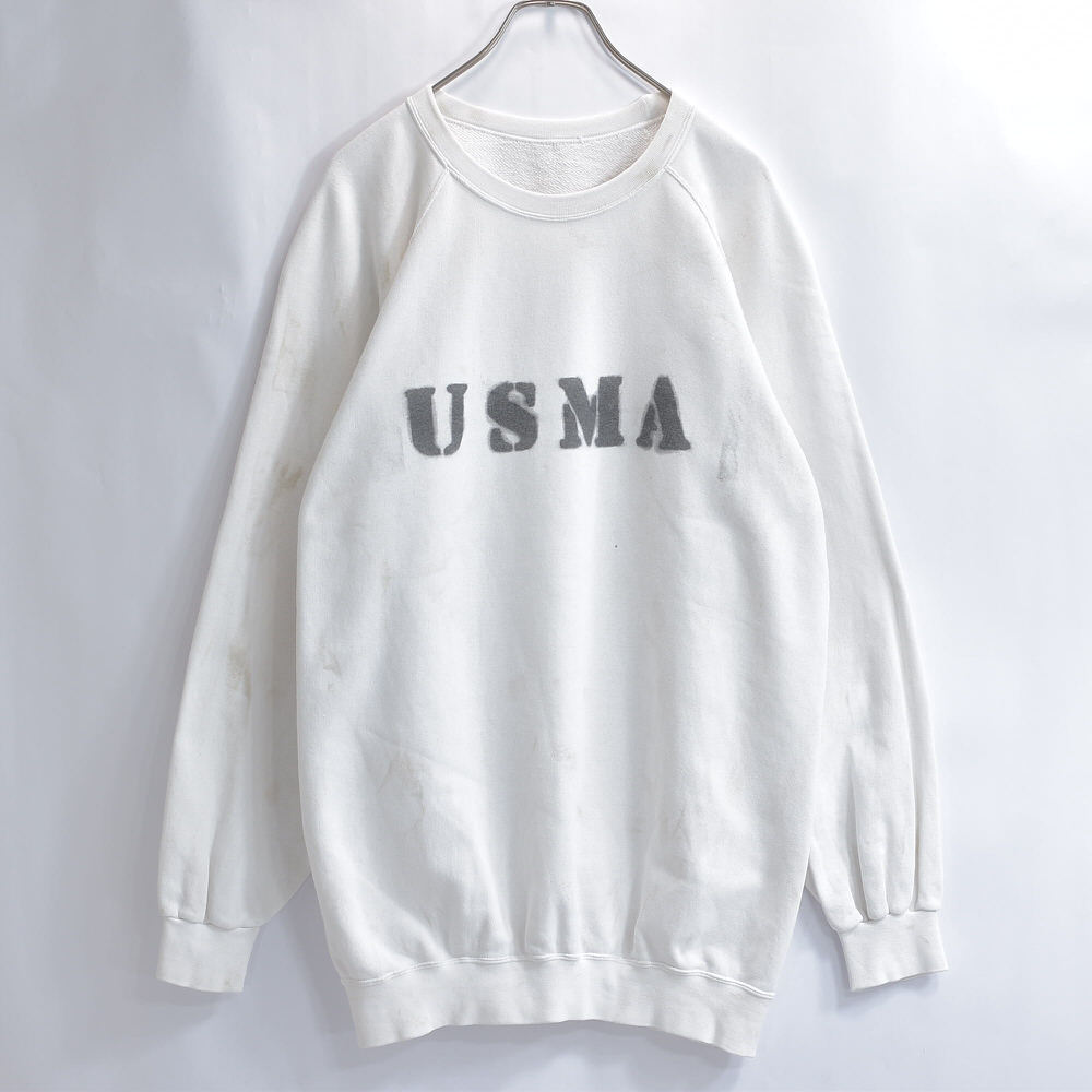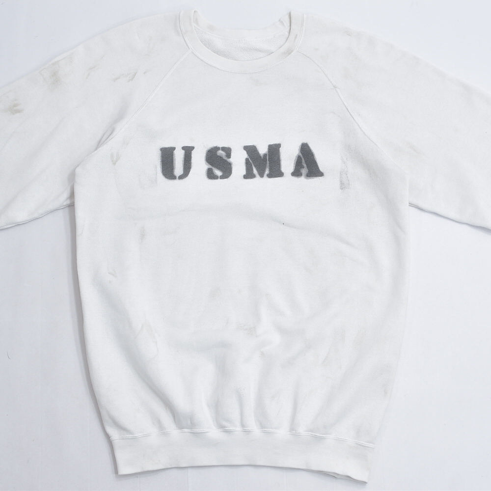 USMA ステンシルプリント スウェットシャツ トレーナー アメリカ 陸軍士官学校 ヴィンテージ ホワイト 雰囲気系 ビンテージ 古着 メンズ L~XL相当