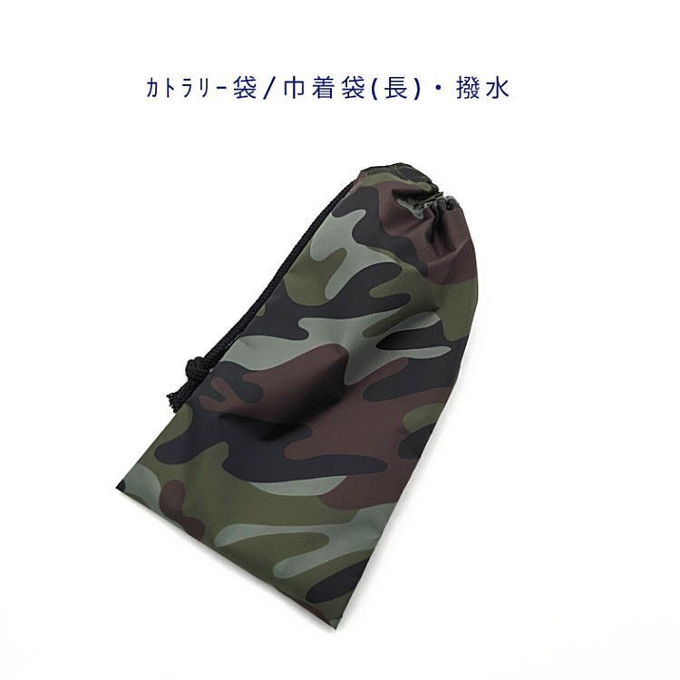 カトラリー袋・巾着袋 長方形【撥水加工 迷彩柄 カーキ】ペットボトルカバー カトラリーケース はし袋 コップ袋 ポーチ カモフラ アーミー