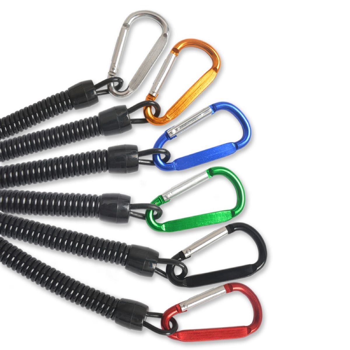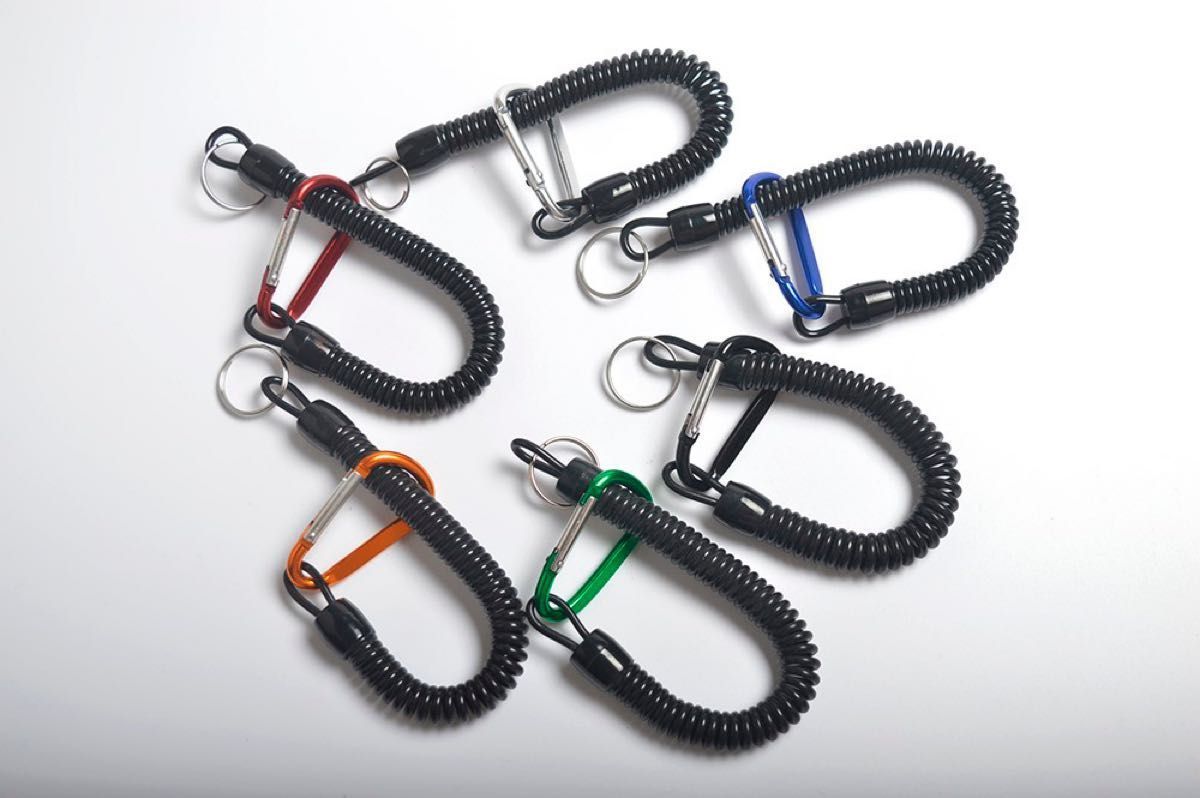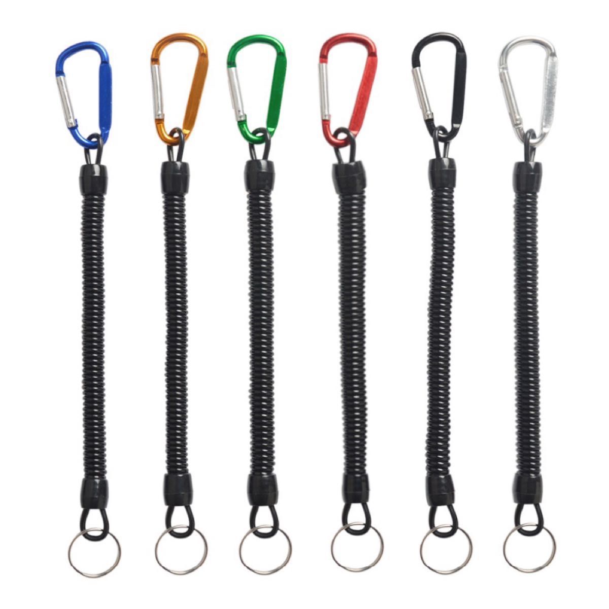 軽量カールコード 6本セット 最大伸長120cm アルミカラビナ付き スパイラルコード 釣り道具 工具等の落下防止 ストラップ の出品です。
