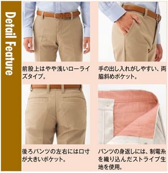 「商品概要 ●素材 : ストレッチ制電ツイル ポリエステル80%・綿20% ファスナー/金属(スライダー/金属) [商品詳細] 流行に左右されないベーシックなストレートシルエットパンツ。 ストレッチ機能が付いた導電糸入り素材でJIS-T8118対応。 ●JIST8118適合商品 JIS T8118とは静電気帯電防止作業服の規格のことで、静電気が溜まりにくい素材を使い、 ズボンの前ファスナーなど、着用時に完全に隠れるパーツ以外は、 金属を一切使用せず樹脂等のパーツを使うことで帯電防止を行います。 帯電防止 ストレッチ 後ろポケット・前ポケット・制電糸を織り込んだストライプ生地 」 新品で¥1900より最落無しで売り切りますのでお買い得ですよ!(文中文字化けする場合がございます。極力修正はしておりますが原因不明で修正しきれない箇所もございます。ご迷惑おかけしますが何卒ご理解ご了承下さい) | |