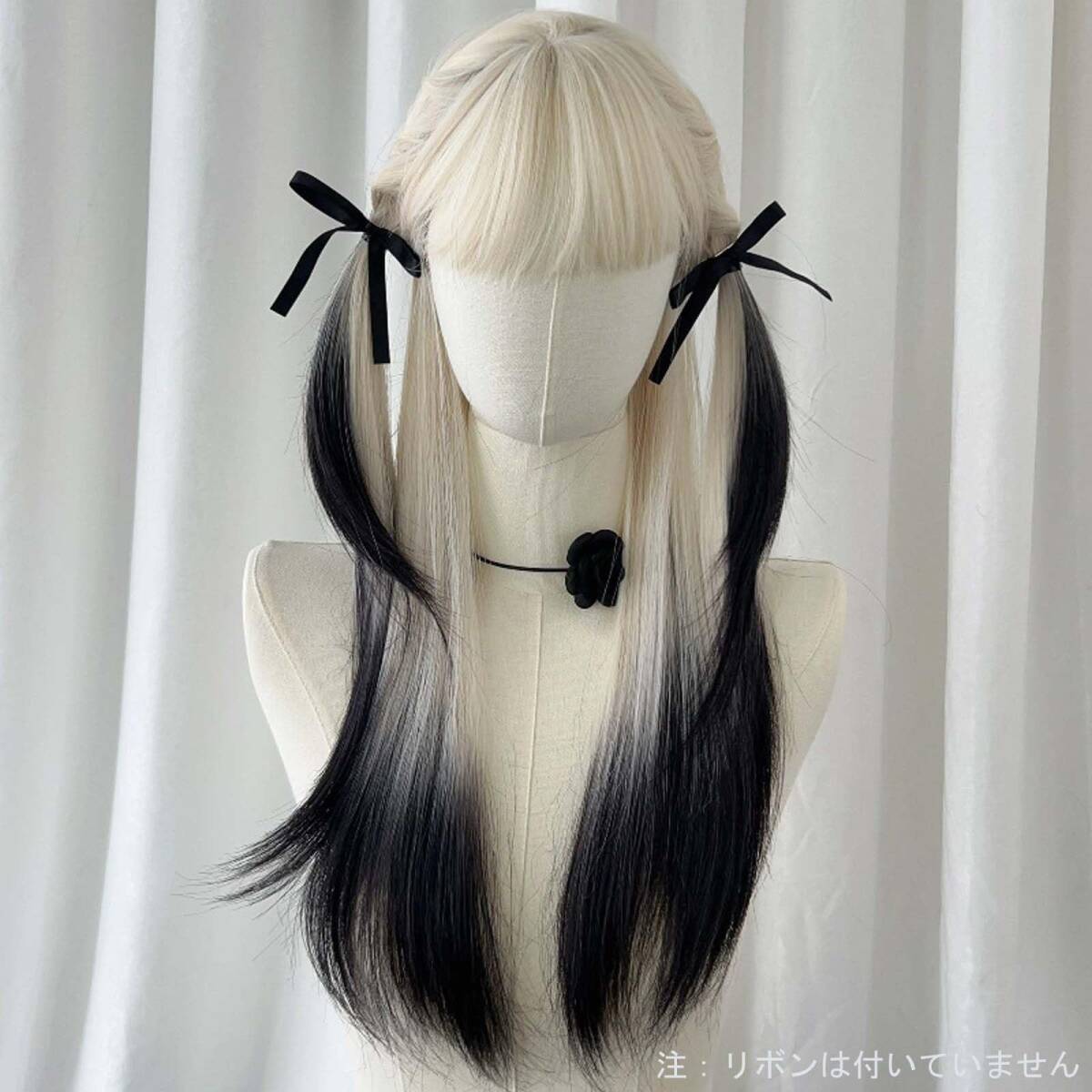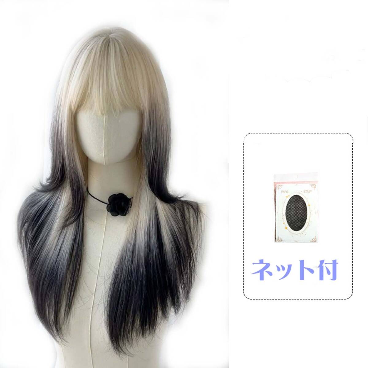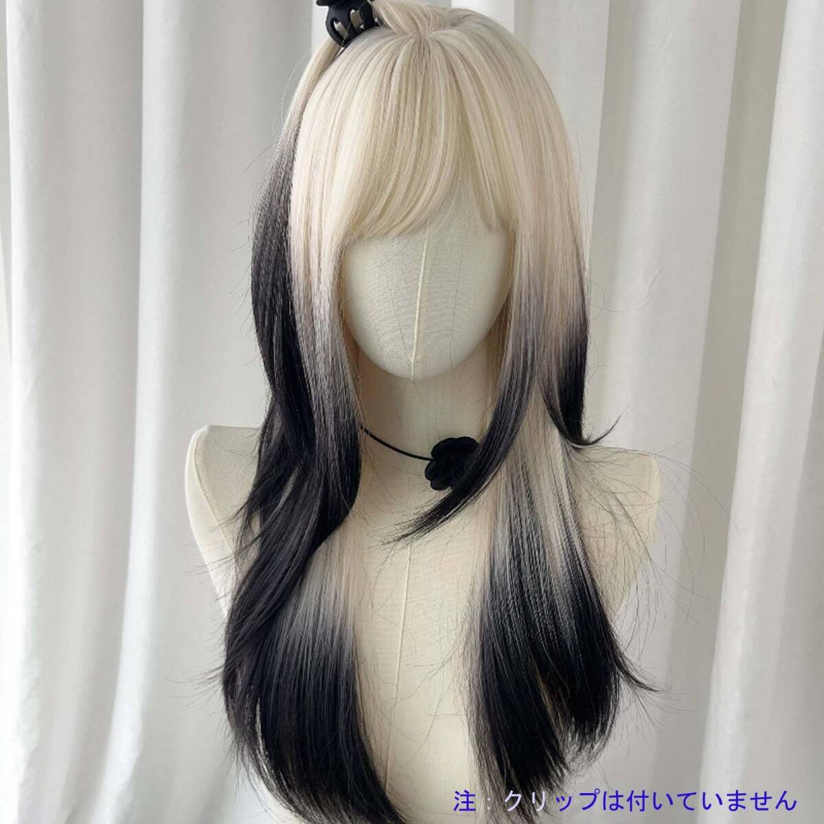 商品名 | ウィッグ カツラ ロングカール 耐熱 ロングヘア 白 黒 ホワイト ブラック グラデーション |