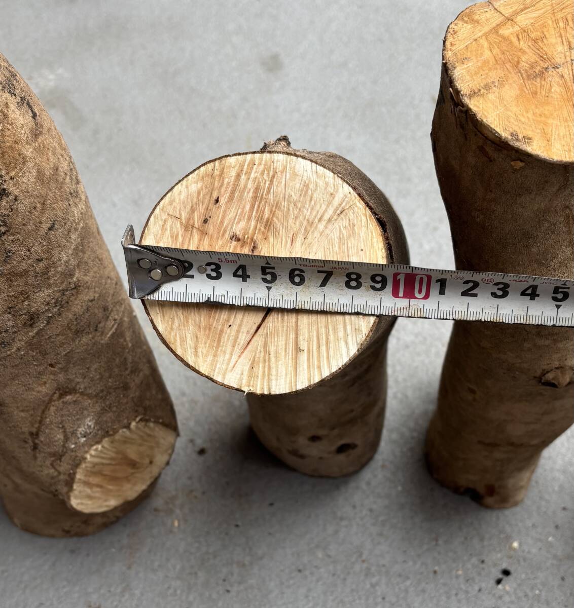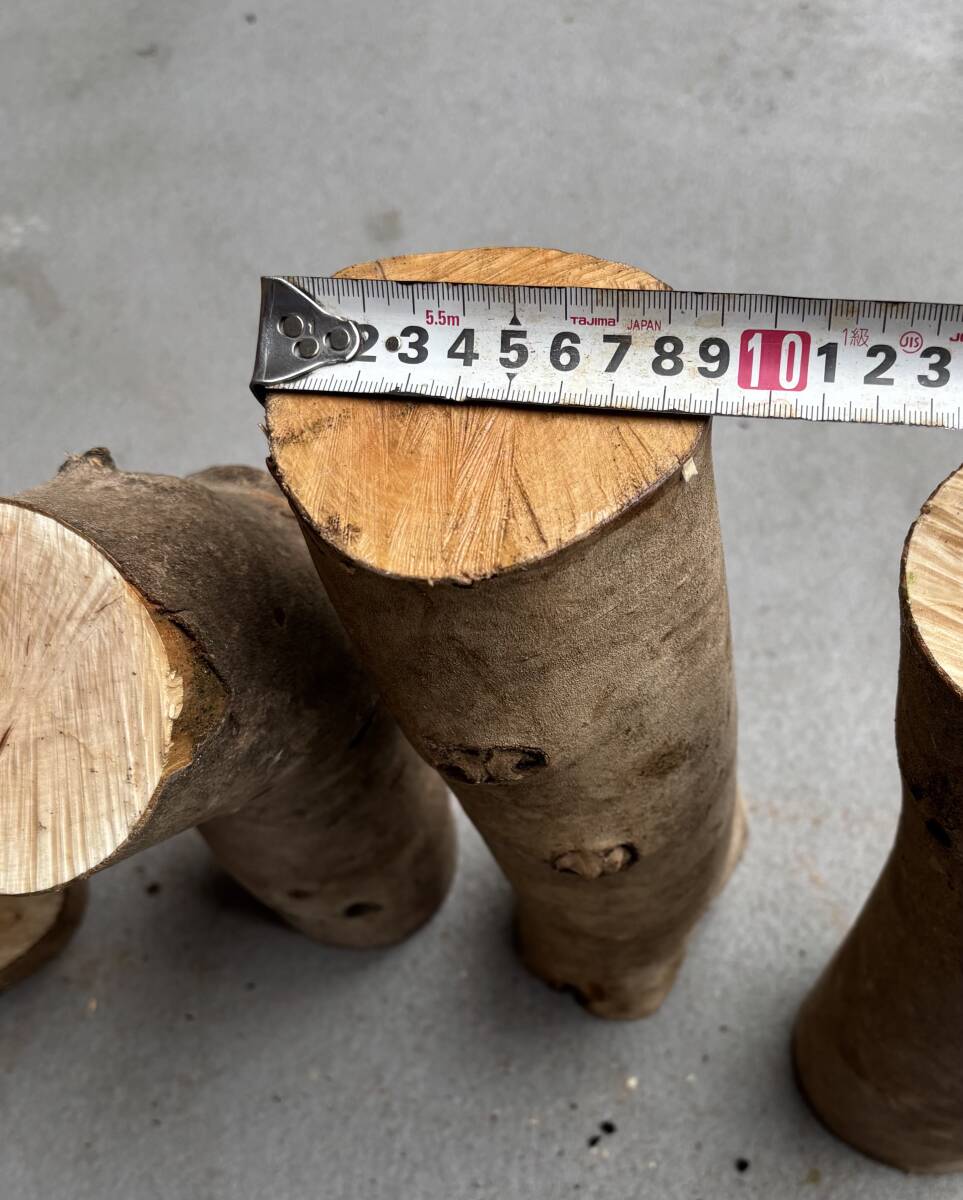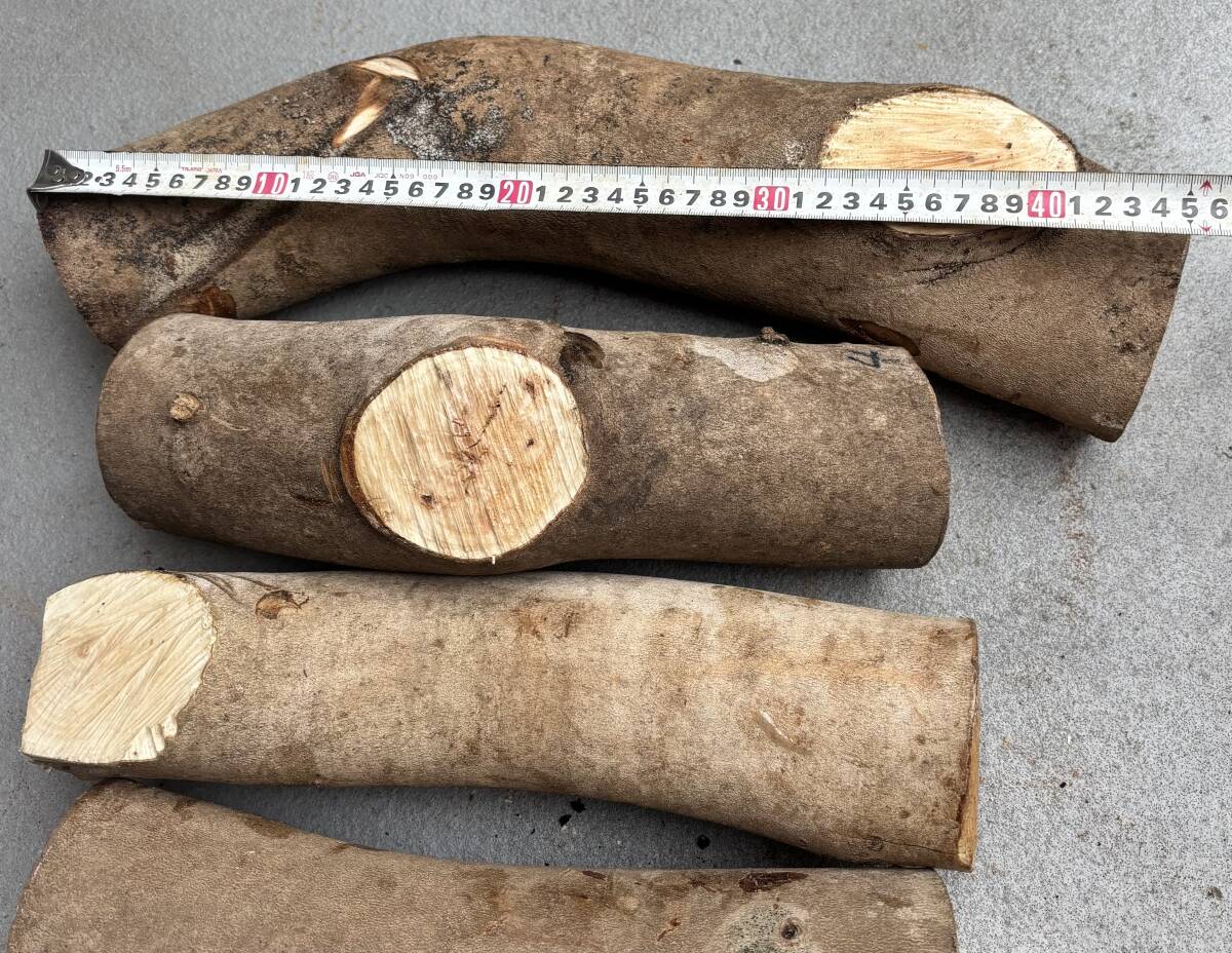 長さ約45、30、34、32センチ、直径9、9、9、9センチ。 切口に割れあります。