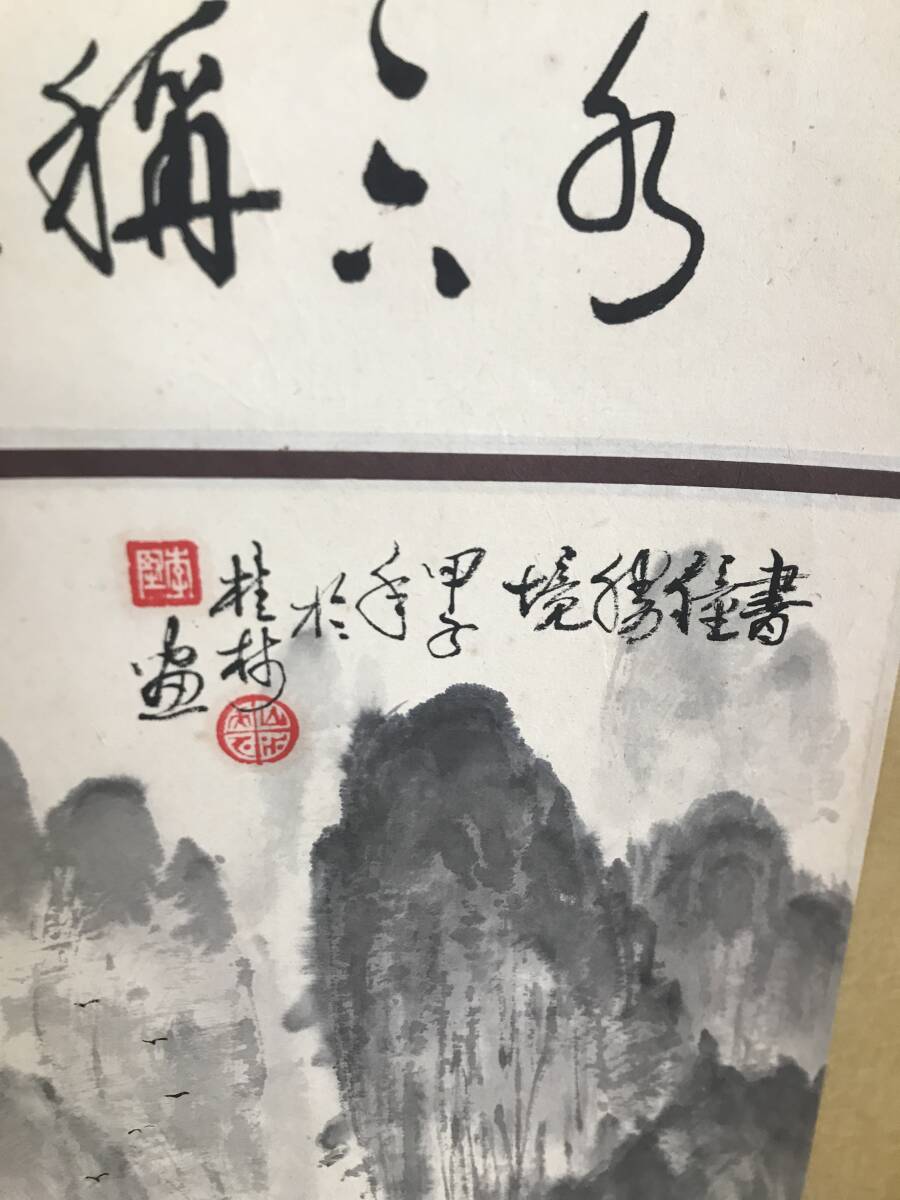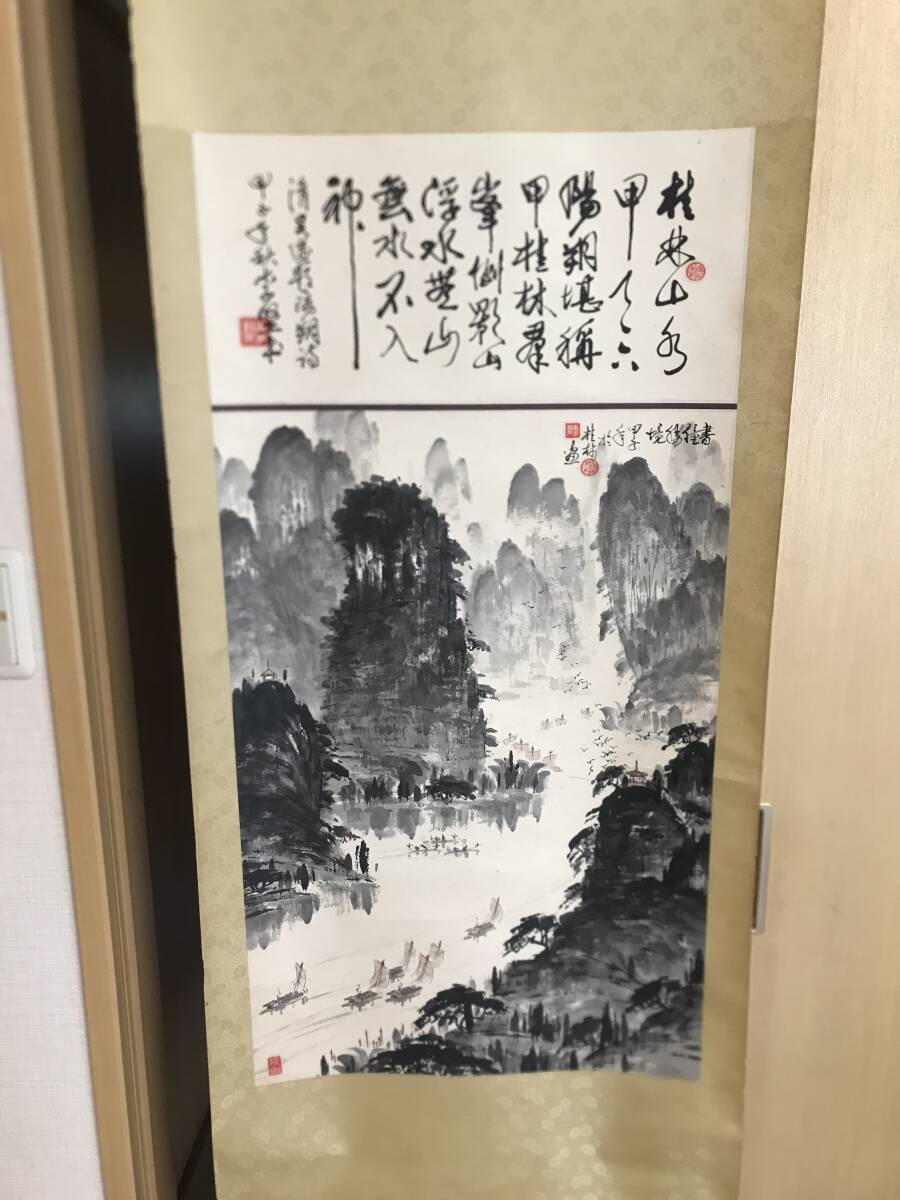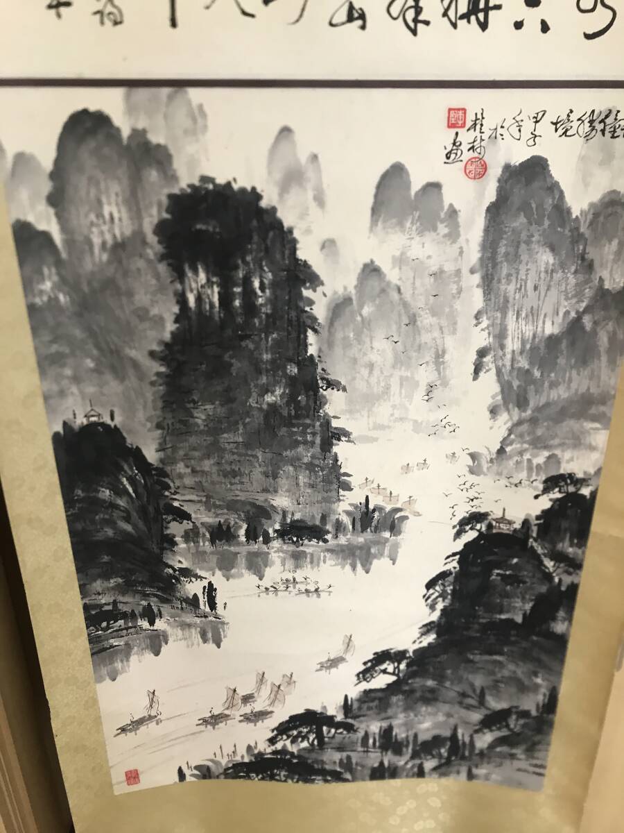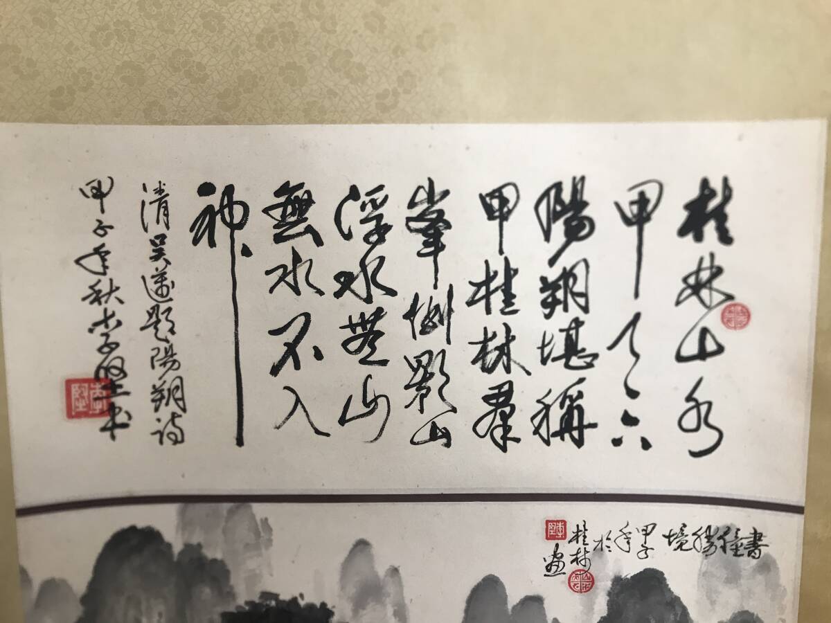 掛軸 中国画 李堅 ?  桂林  山水図   大幅 中国 中国美術   【模写】