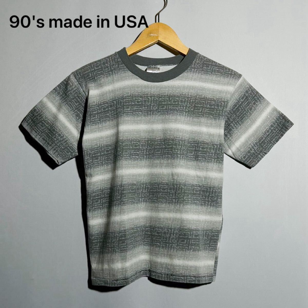 USA製 1990年代 90's BASIC IMAGE ヴィンテージ 総柄 Tシャツ ボーダー オンブレ チビT S サイズ アメリカ スケーター サーフィン 70's
