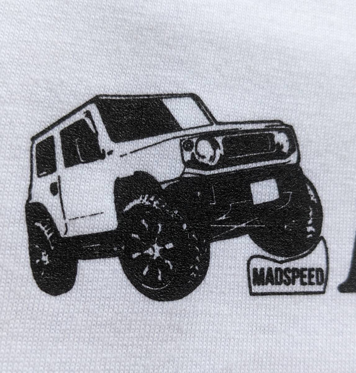 【MADSPEED】趣味Tシャツ ジムニー ジムニーシエラ ver ホワイト 長袖(JB64W JB74W JB23W JB43W JB22W JA22Wetc) Lサイズ