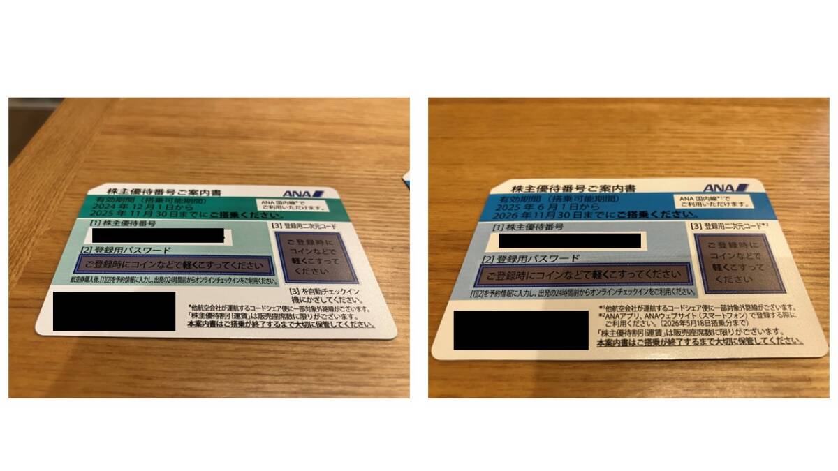2024年11月、2025年5月に届いたANAの株主優待券 2枚です。