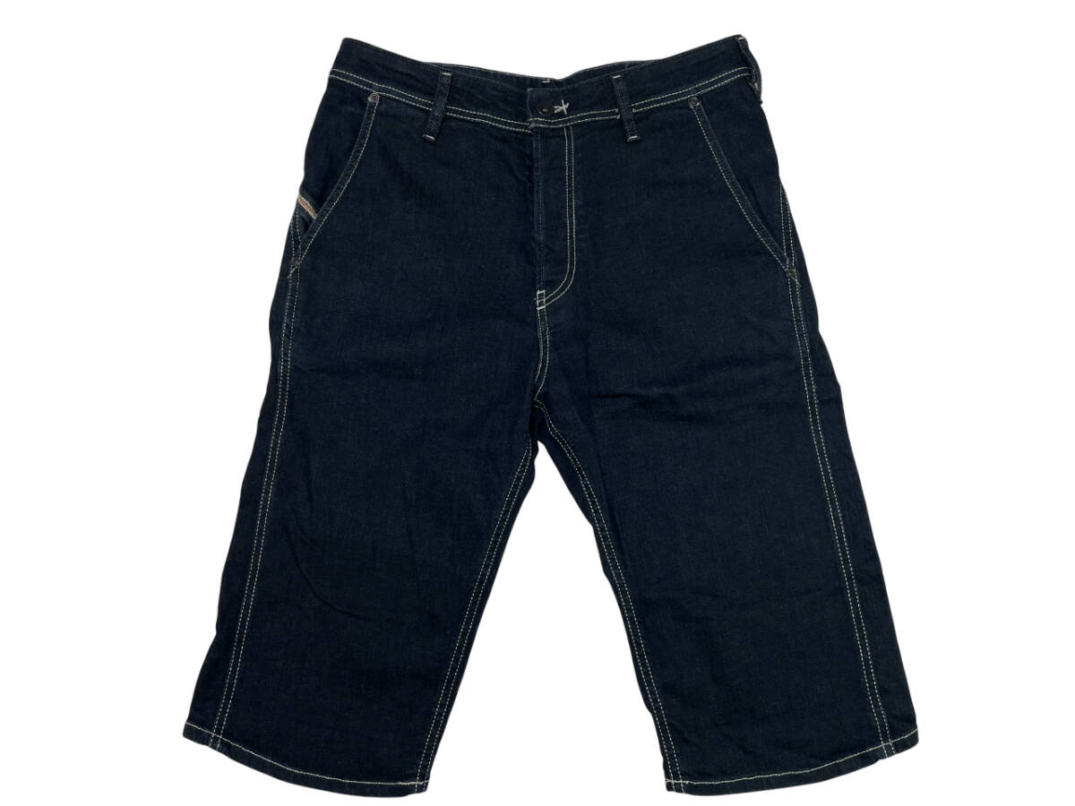 | ブランド:ディーゼル 型 番 :PHEDOR カラー :濃紺 状 態 :USED ディーゼル PHEDOR ショート デニムパンツ です。 濃紺に白のステッチが映える 大きなでシンチバックが特徴的な カッコイイ パンツです。 色も濃く状態も良い、これから長く付き合えるデニムです。お探しの方お勧めの1本です。 ■サイズ:製品表記 W28 ■サイズ:実寸(平置き) ウエスト 39.0cm (×2=約78cm) W31相当 股下 36.0cm 股上 30.0cm ワタリ 29.0cm すそ幅 21.0cm | ||