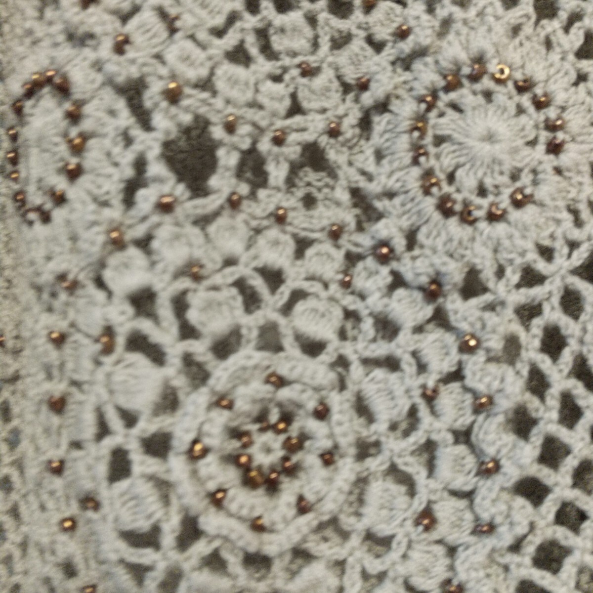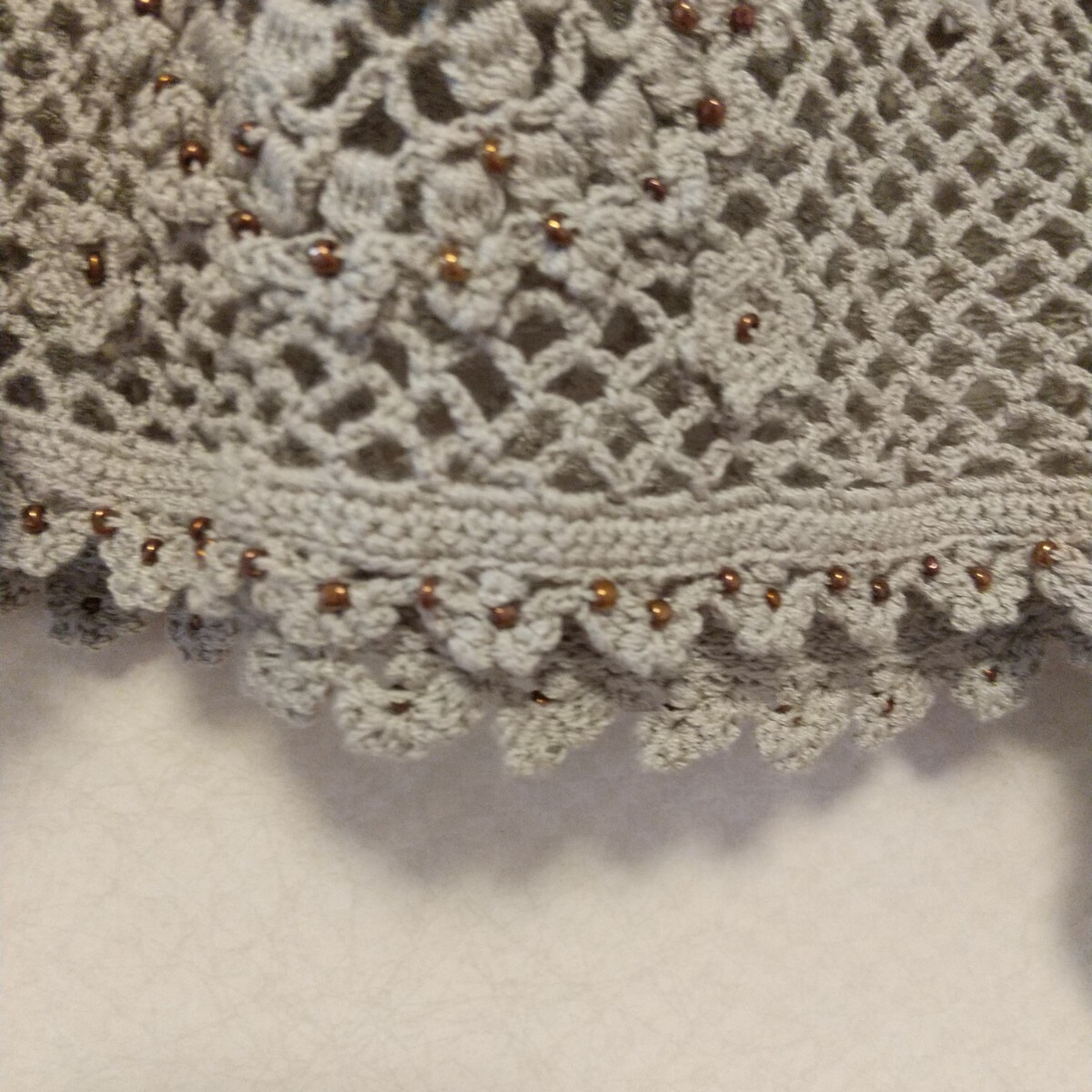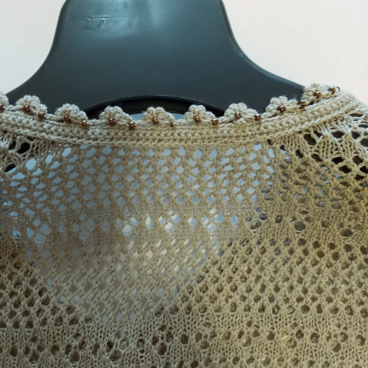 繊細できれいなビーズ飾りがおしゃれなカーディガンです。裾や袖口にもビーズ飾りが施されてエレガントな印象。合わせやすい色目で、少し短めの丈の軽やかなお品です。
