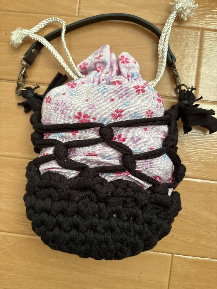 ハンドメイド 巾着袋 薄ピンク花柄新品未使用