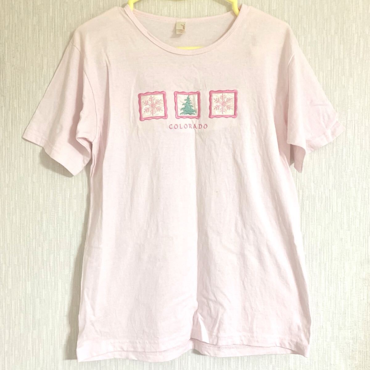 アメリカで手に入れた、胸元刺繍デザインTシャツ。