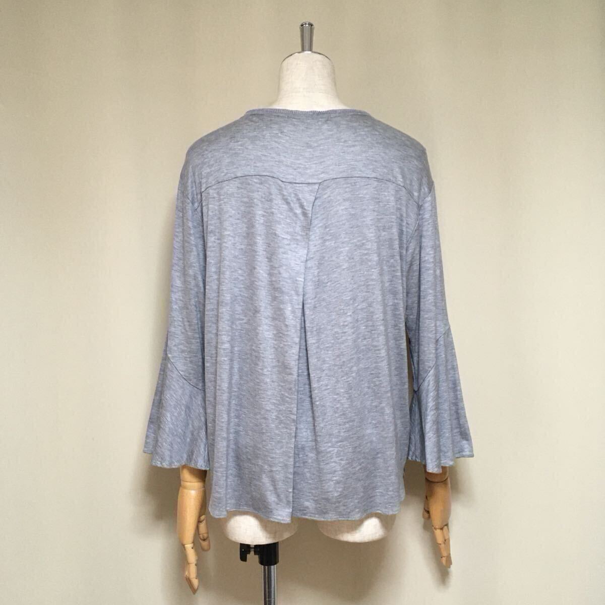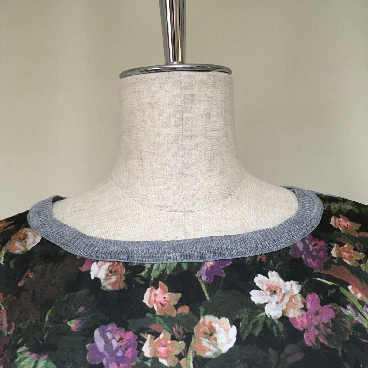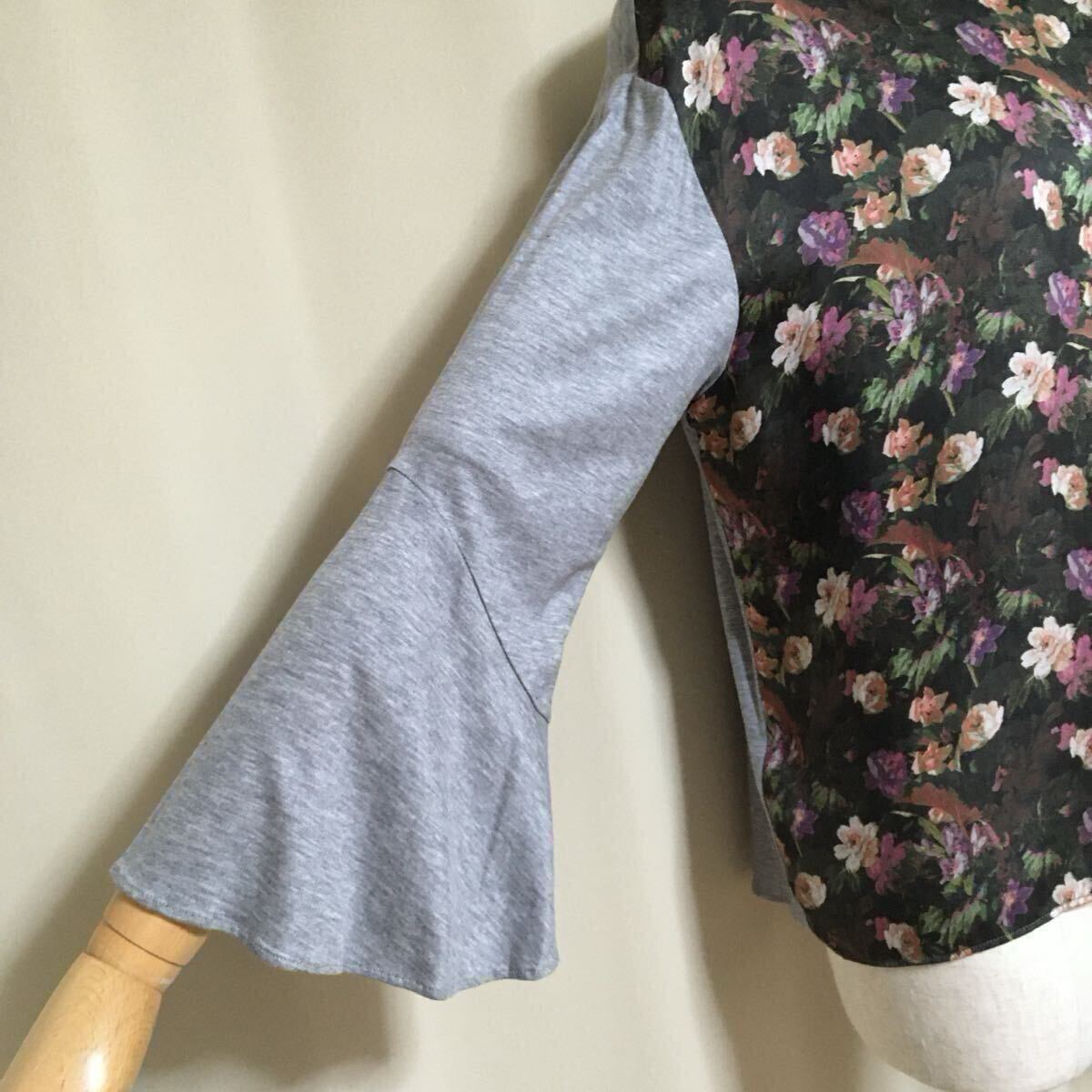 【美品】自由区 LIBERTY リバティ フラワープリント フレアスリーブ カットソー 40/Lサイズ相当 グレー×ブラウン系 レディース リヨセル