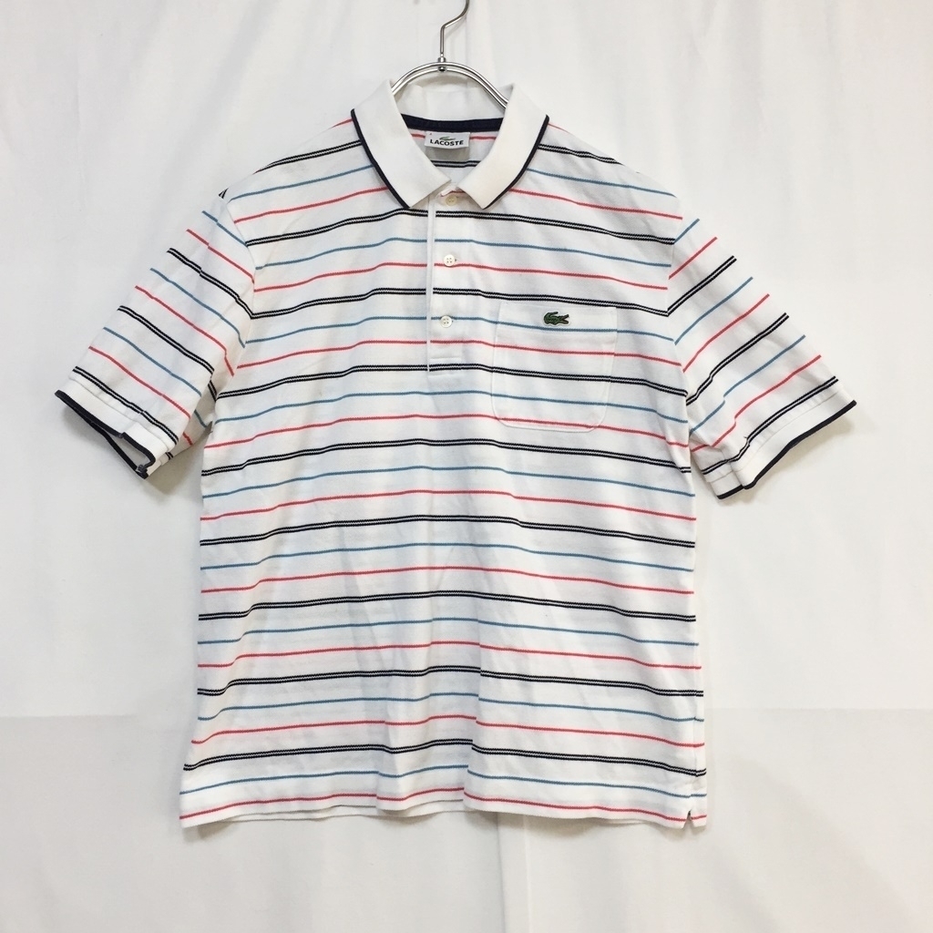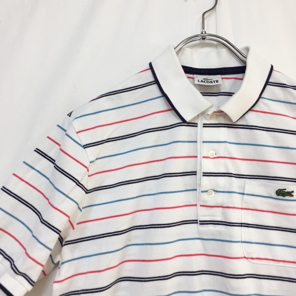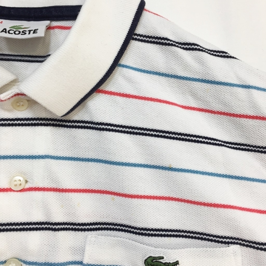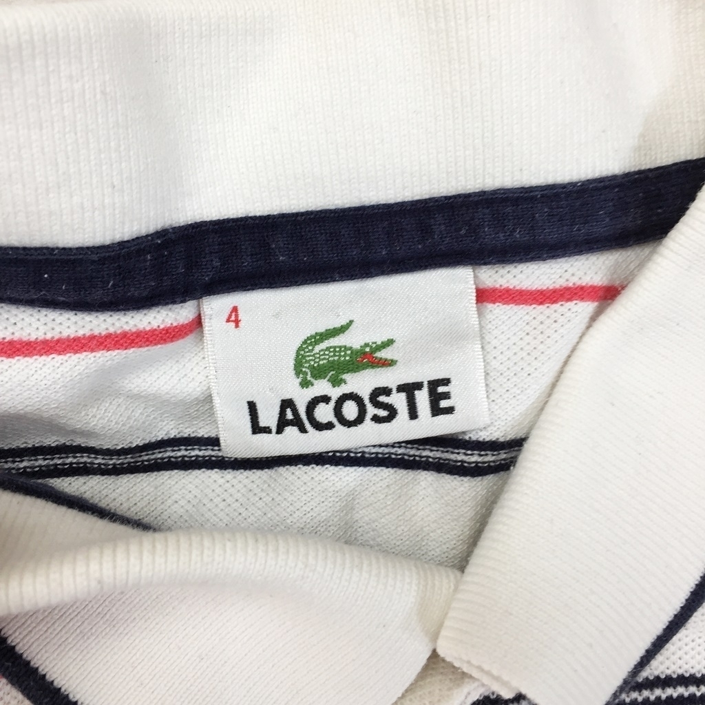 商品: LACOSTE/ラコステ 半袖ポロシャツ ストライプ柄 コットン100% ホワイト サイズ4