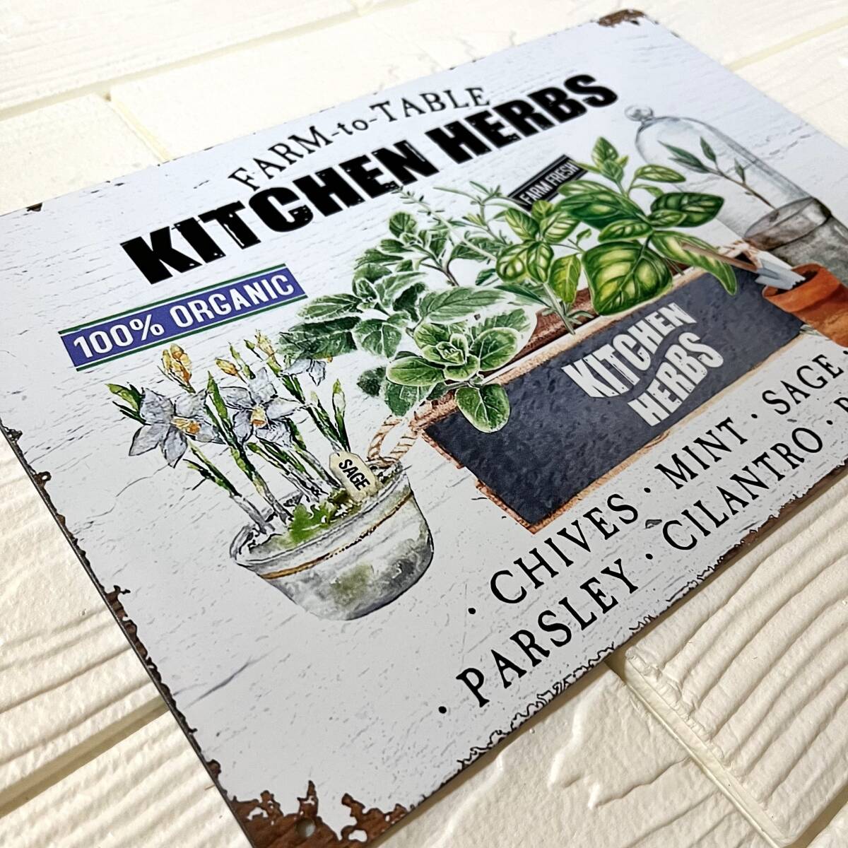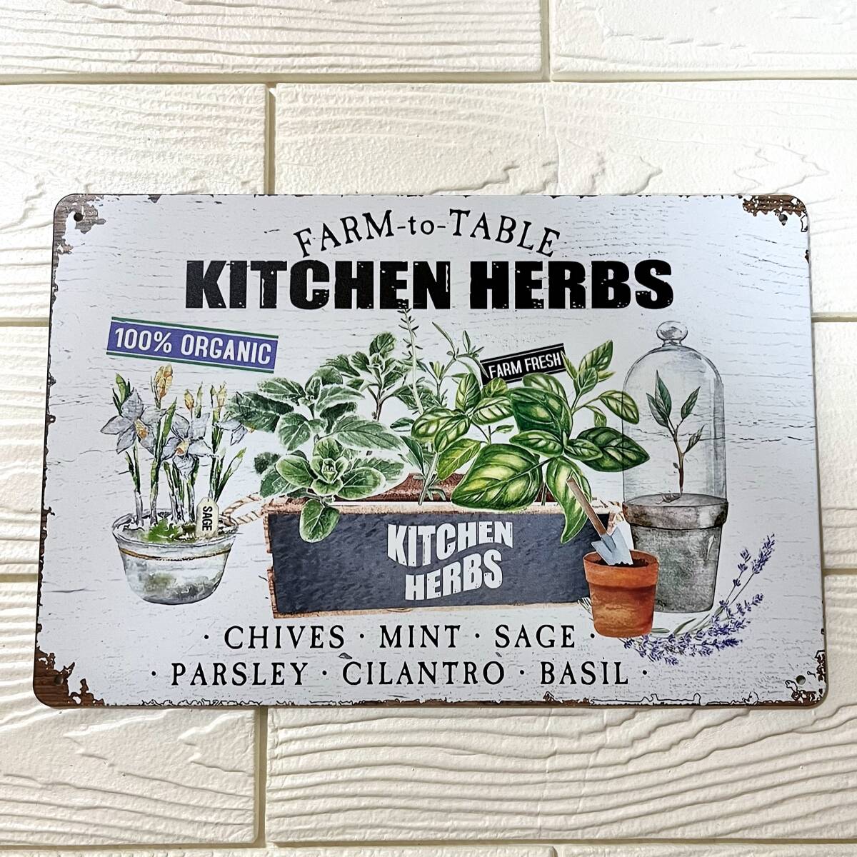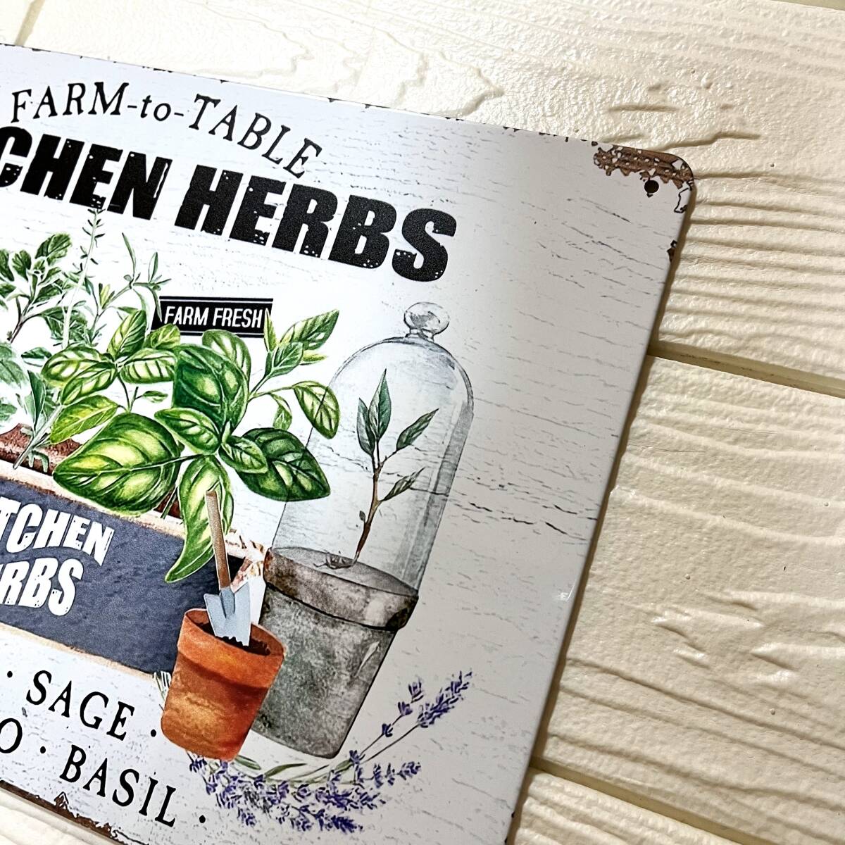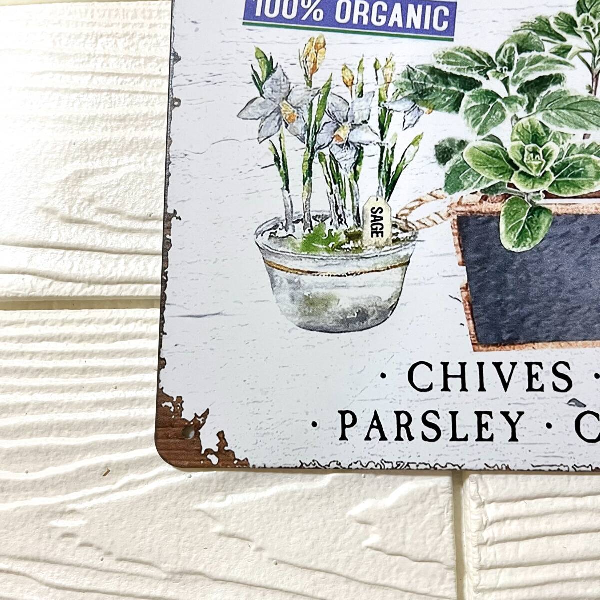 北欧風のミニマルでおしゃれなブリキ看板。ガーデンや玄関先、キッチンなどナチュラルなアクセントを加えます。