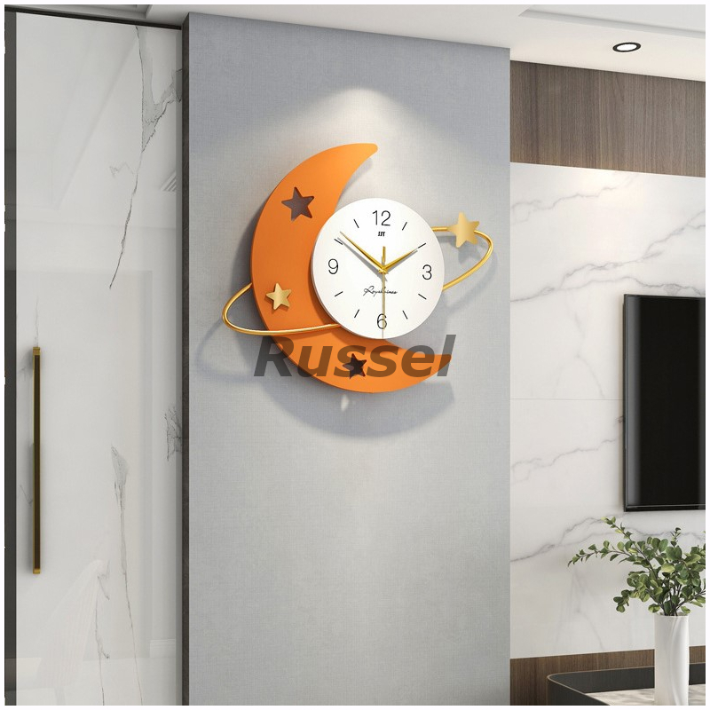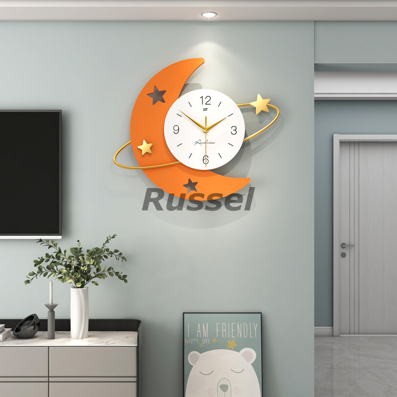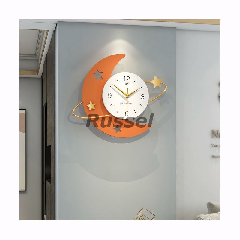 掛け時計 三日月 星 装飾 アート おしゃれ かわいい インテリア 北欧 静音 連続秒針 ロマンチック 高温焼付塗装 ウォール クロック