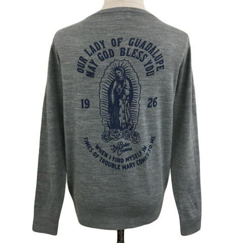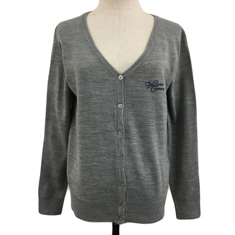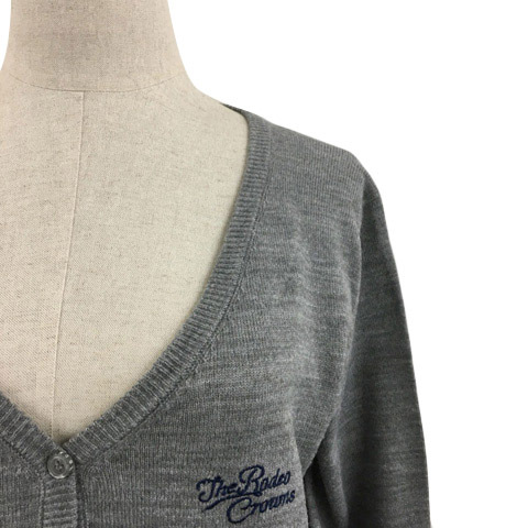 ロデオクラウンズワイドボウル RCWB カーディガン ニット Vネック メランジ プリント 刺繍 ロゴ 長袖 S グレー 紺 ネイビー レディース