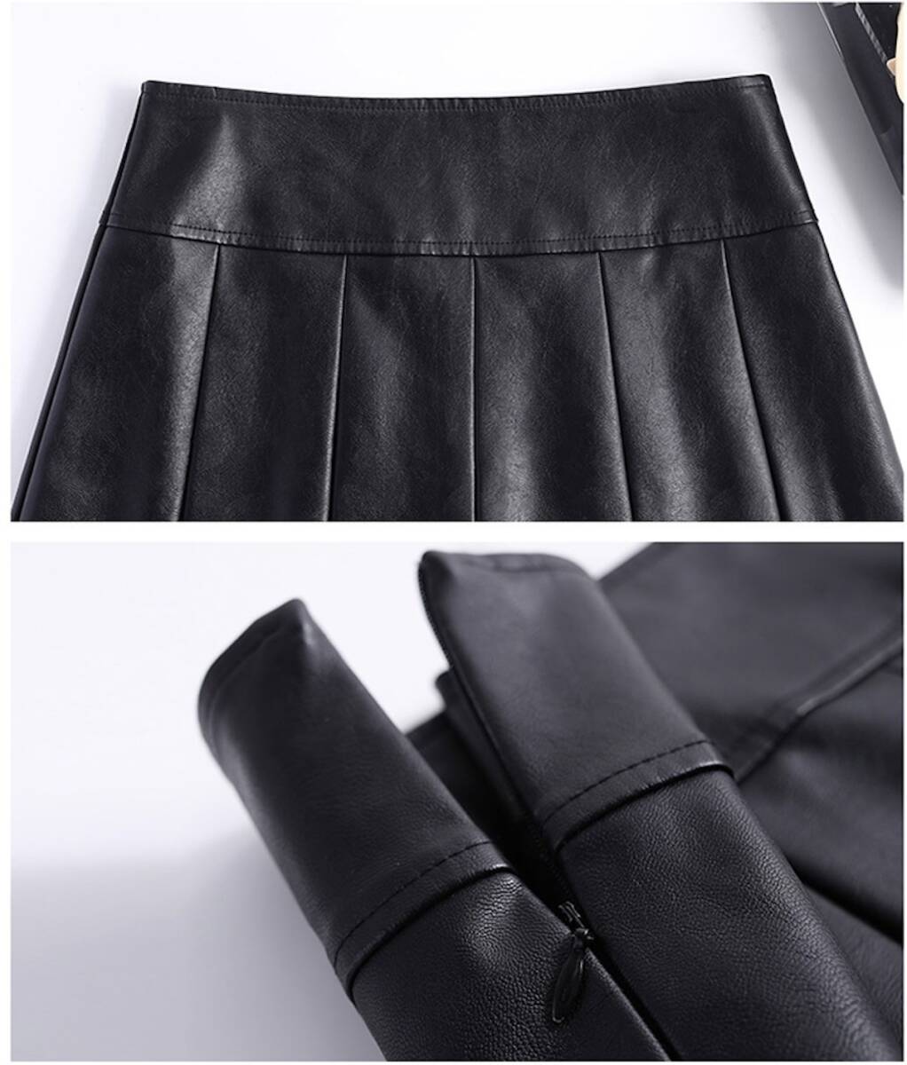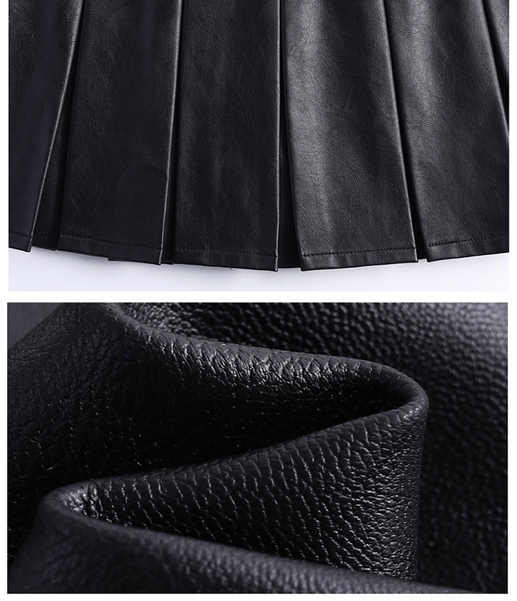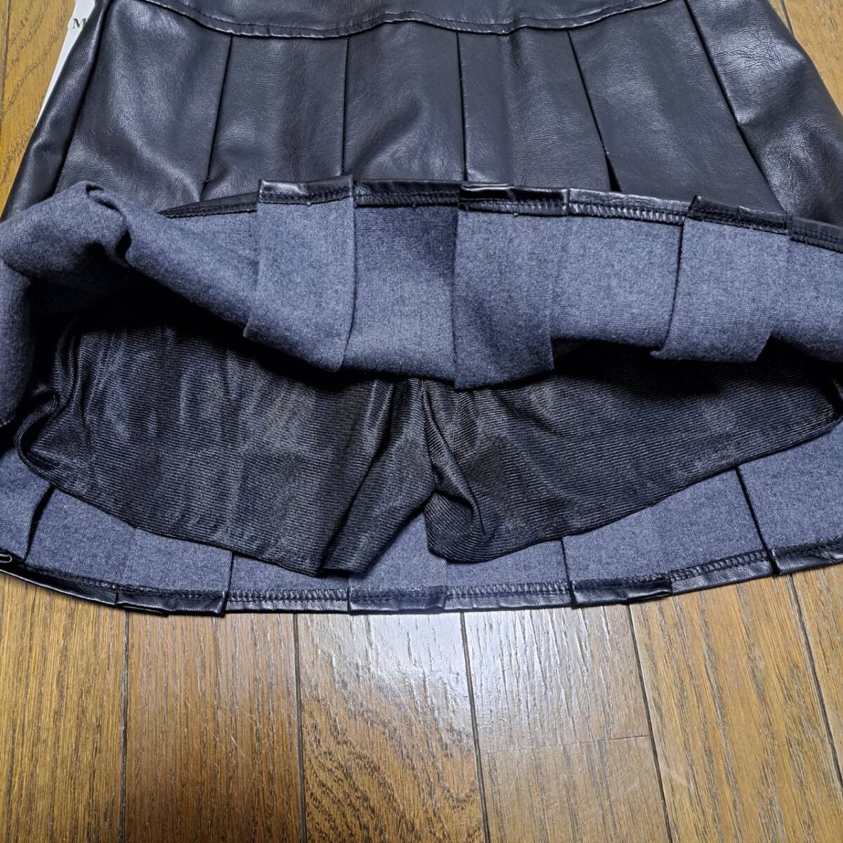 ◆ レザー ミニスカート かっこいい ロック 合皮 レザースカート プリーツ レディース Lサイズ ブラック