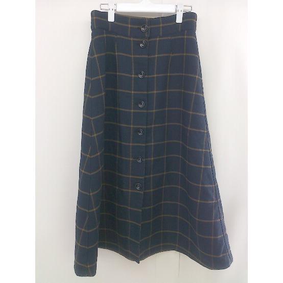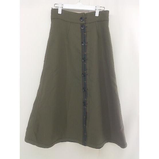◇ nano universe ナノユニバース フロントボタン ロング フレア スカート サイズ38 カーキ ネイビー レディース