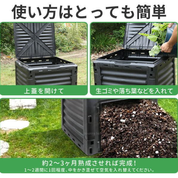 上蓋から廃棄物を加え、約2〜3ヶ月待てば発酵できます。