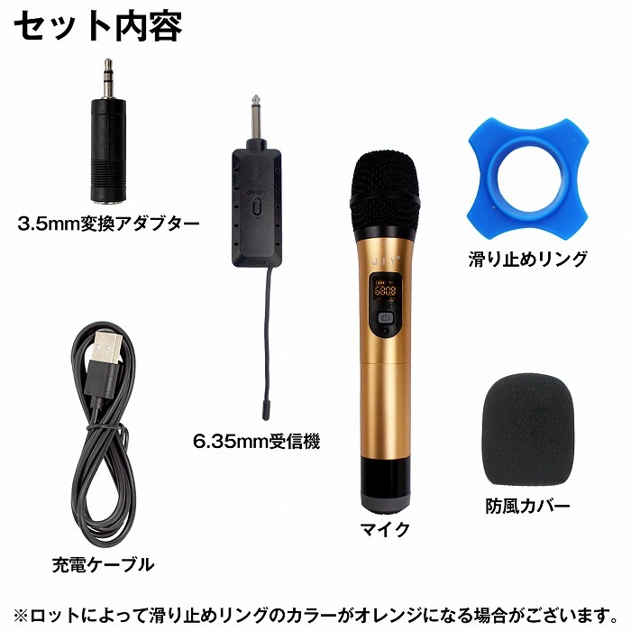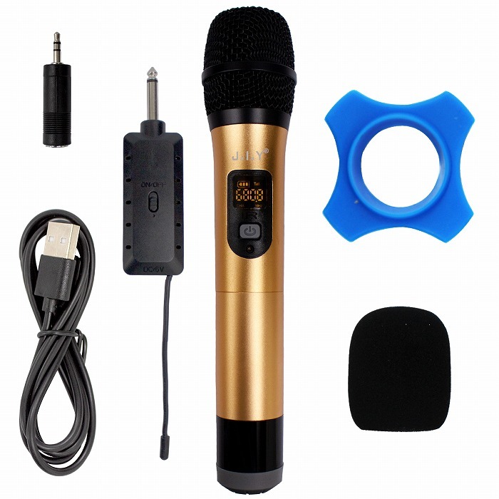 ワイヤレスマイク ハンドマイク 無線 コードレス プロフェッショナル マイク カラオケ ゴールド 6.5mm 3.5mm アダプター 街宣