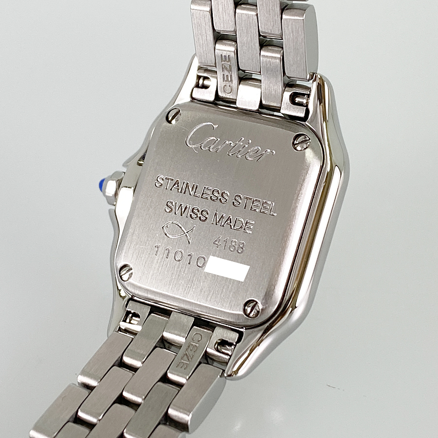 | ■商品名 カルティエ Cartier パンテール ドゥ カルティエ ミニ Ref.4188 SS クォーツ レディース 腕時計 ■管理番号 sss-1776883640001 ■コンディション 【B】 多少の汚れ、傷があり少し使用感の感じられる状態 ≪ランク表≫ N:新品・未使用で付属品がすべて揃っている状態 S:新品同様の状態で買い取った商品 A:わずかな浅いキズ、汚れはあるが大変綺麗な状態 B:多少の汚れ、傷があり少し使用感の感じられる状態 C:目立った汚れ、キズのある状態 D:かなりの使用感、汚れ、キズのある状態 ■商品の状態・説明 【ケース】 外装仕上げ済でございますので概ね綺麗な状態でございます。 【ブレス】 外装仕上げ済でございますので概ね綺麗な状態でございますが、バックルの中折れ部分に薄い擦れが僅かにございます。 ブレスの伸びがございます。 【風防/文字盤】 風防は概ね綺麗な状態でございますが、文字盤の中心と3時の間辺りに傷がございます。 【特記事項】 外装仕上げ済、電池交換済の商品になります。 オリジナルの状態をできるだけ残す為に過度な仕上げはしておりません。 ■ブランド カルティエ ■モデル パンテール ドゥ カルティエ ミニ ■ジャンル レディース 腕時計 ■型番 Ref.4188 ■製造番号 11010xxx ■サイズ ケース径横:18mm ケース径縦:25mm 腕周り最大:16.5cm 重量:39.1g サイズ表はこちら ■素材 ケース:SS ブレス:SS ■カラー 文字盤:ホワイト ケース:シルバー ブレス:シルバー ■付属品 ・弊社保証書 ・純正外箱 ・国際保証書(2020年6月) ■仕様 ムーブメント:クォーツ 動作状況:正常稼働 電池交換:2025年3月 電池交換済 外装仕上げ済 【ご注意ください】 ●画像によっては実際の色と異なる場合がありますので、あらかじめご了承下さい。 ●この商品は実店舗にて店頭販売を行っております。在庫管理には万全を期しておりますが、万が一在庫切れの場合は何卒ご容赦くださいませ。 ●スマホでご覧いただいている方は、パソコン版で詳細をご確認頂いてからのご購入ご検討を、よろしくお願い致します。 ※クオーツ時計の場合 内蔵されている電池は動作確認用のモニタ電池です。 通常の期間より短い期間で電池切れになる場合がございます。 商品出荷時の検品で電池切れを確認した場合には、電池交換の後に出荷させて頂きます。 尚、商品発送に2~3日頂く場合がございます。予め、ご了承下さいませ。 ◆保証の詳細はこちら◆ ■商品に関するお問い合わせ先 キングラム 心斎橋別館 電話番号:06-6251-9020 メールアドレス:shinsaibashi.2nd@bestbuy.co.jp 営業時間:11:00~19:30 定休日:不定休 ※営業時間外のお問合わせはご対応を致しかねます。 あらかじめ、ご了承くださいませ。 |
