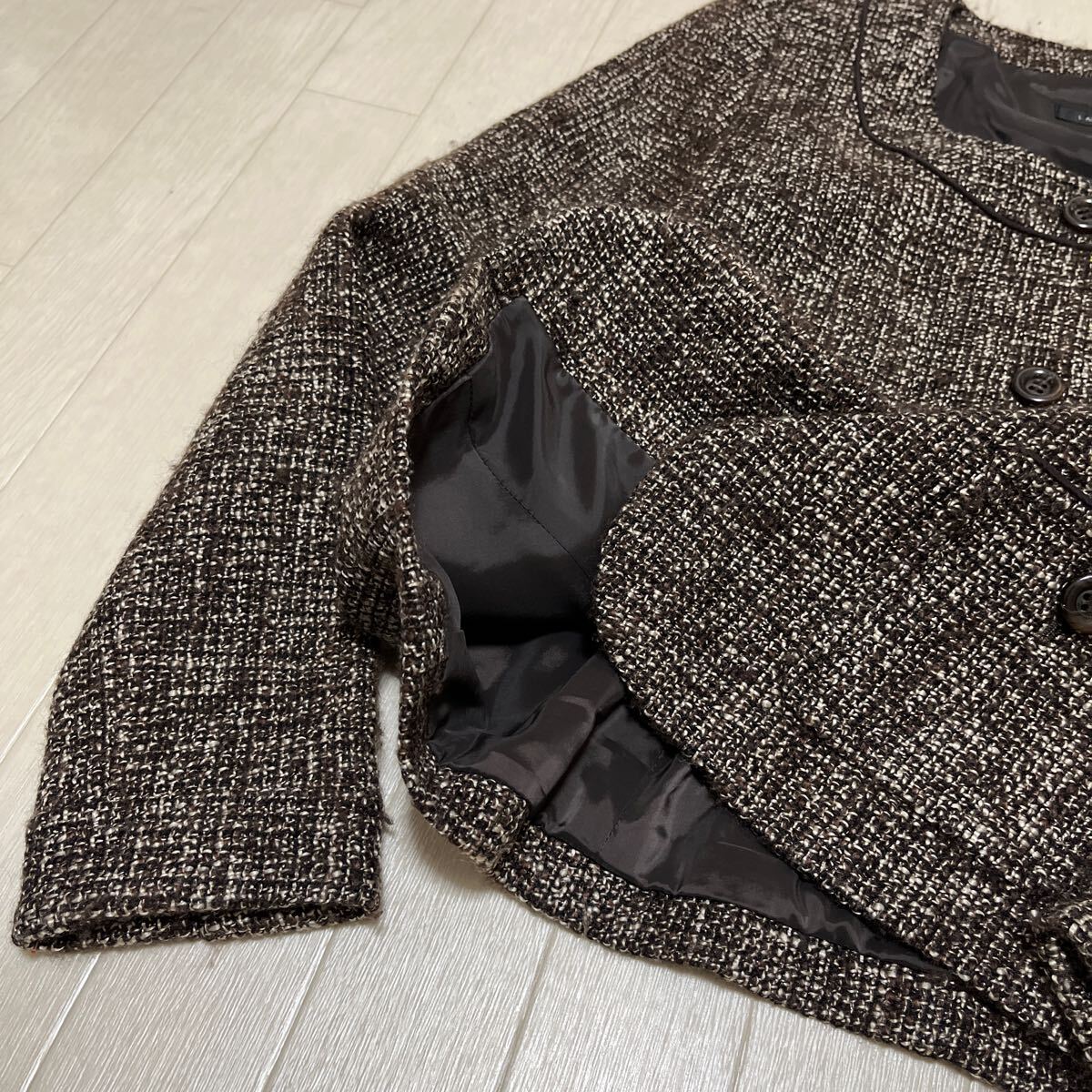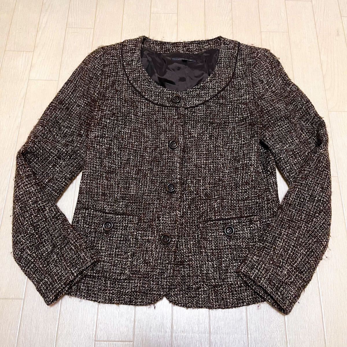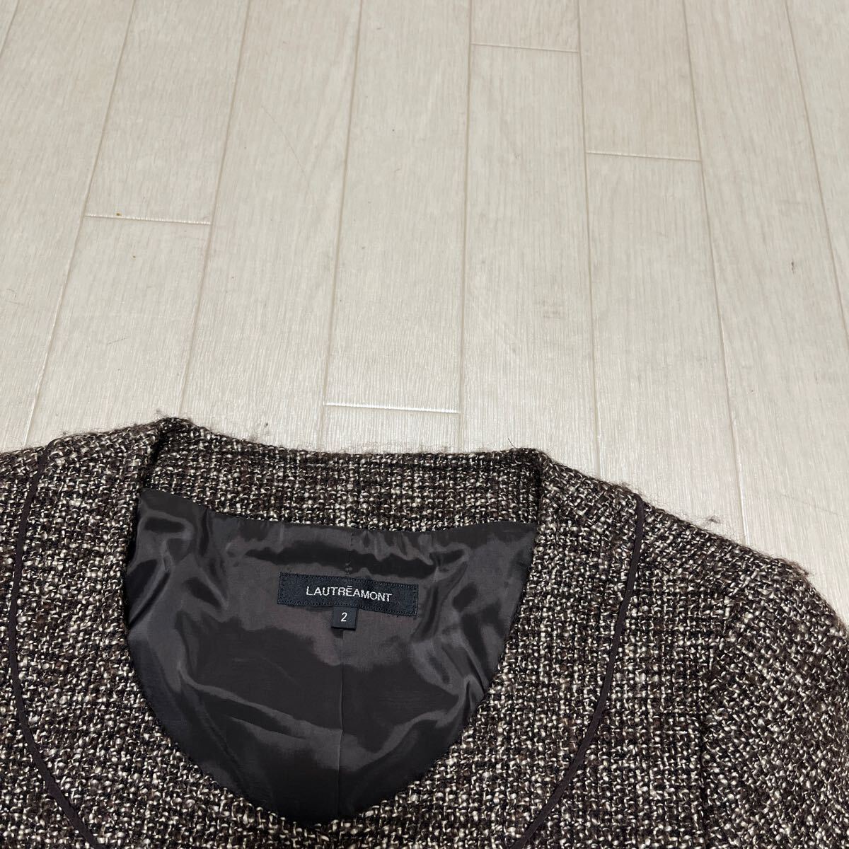 和743★ LAUTREAMONT ロートレアモン ノーカラージャケット 2 ブラウン レディース