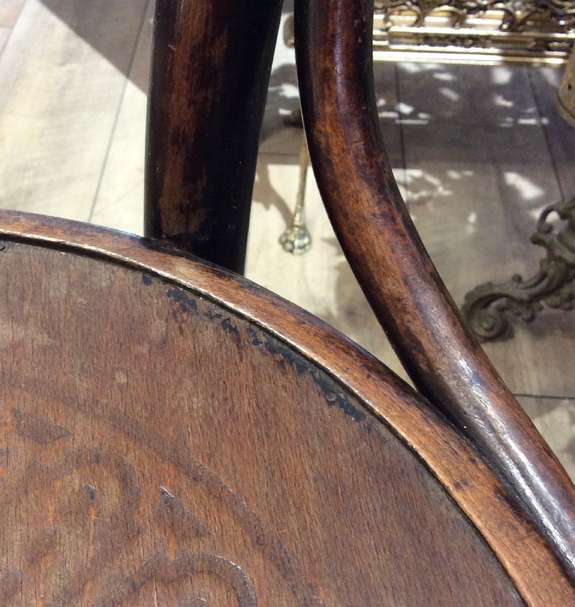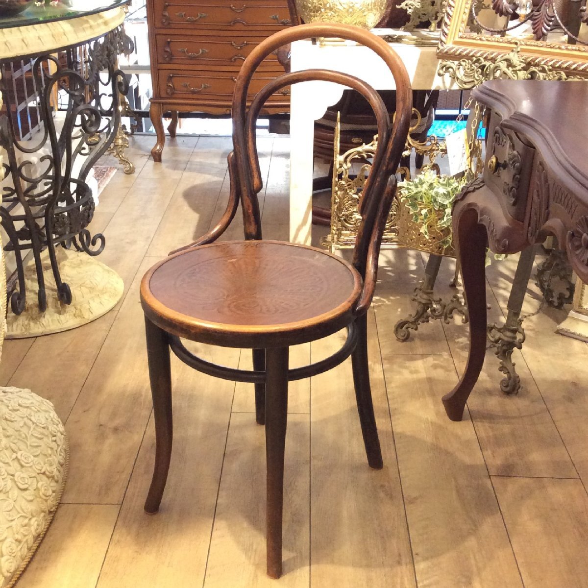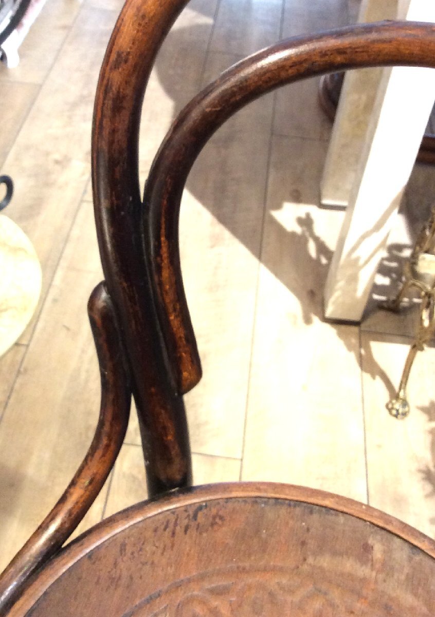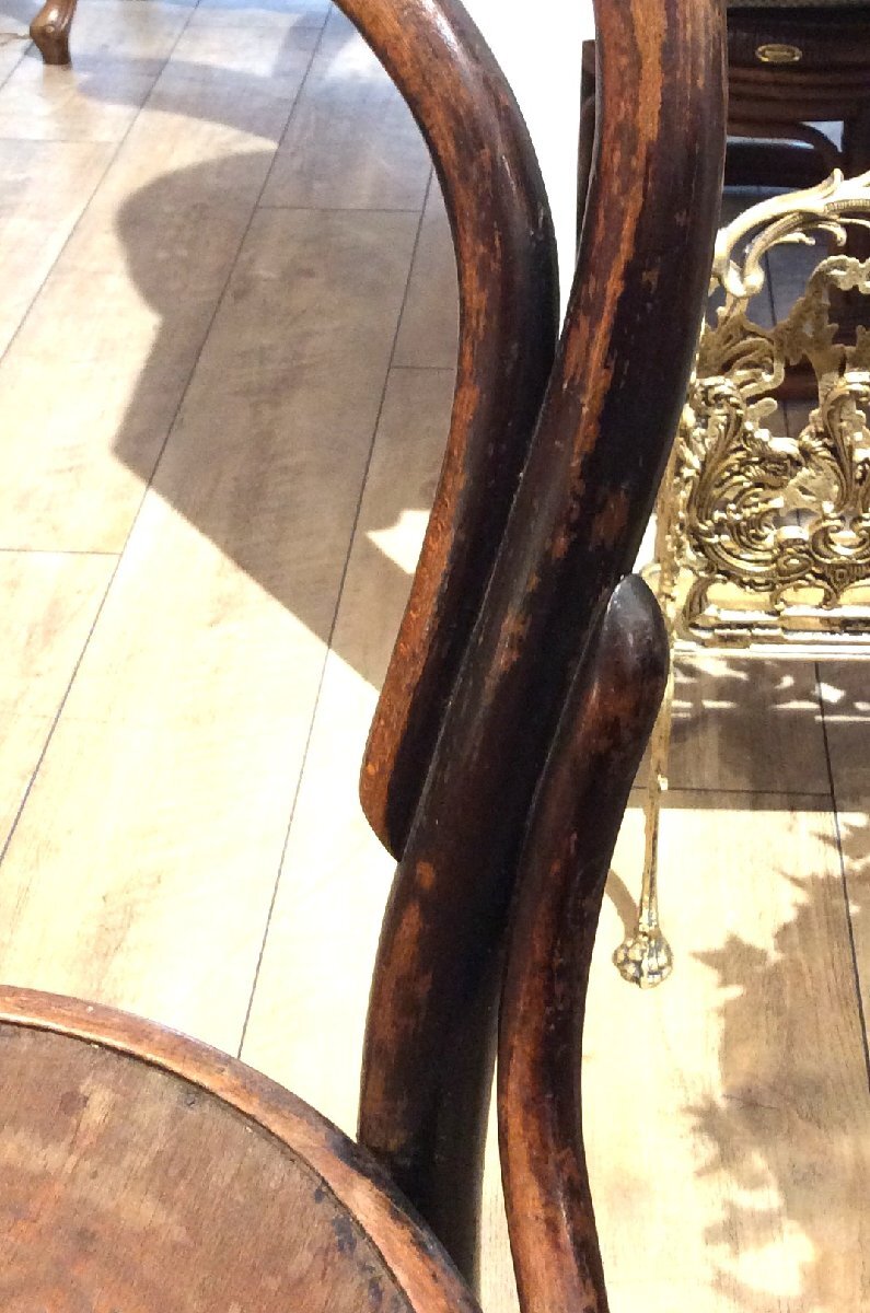 ◇ベントウッドチェアは、蒸気で柔らかくした木材を型にはめて形成するチェアのことで、分解できることから世界的にヒットしたアンティークチェアのアイコン的な商品です。耐久性があり、軽く、美しい曲線と直線がさまざまなデザインとスタイルを楽しむことができます。製造元や年代で非常に多くの種類があることでコレクターズアイテムとしても知られます。 <商品について> ■サイズ:W41×D38×H85 SH47㎝ ※経年使用による傷、汚れ等が多く見られます。全てではありませんが画像にてご確認ください。 <商品の状態について> ◎経年に伴い、小傷、などが見られますが、アンティークならではの「風合い」ともいえる部分です。使用に問題となるような目立ったダメージはありません。これからもお使い頂けるコンディションです。 ★アンティーク・ビンテージ商品について★ アンティーク家具には一般の家具にはない雰囲気や重厚感、そして上質の天然素材で作られている等の長所がございますが、現代のものと比べ水気や熱などに弱い塗装や、天然素材故のゆがみや割れ等の短所も併せ持つことをご了承下さい。 また、アンティーク・ヴィンテージゆえの細やかな表面キズや汚れがあるものがございますが、アンティークならではの「風合い」ともいえる部分ですのでどうぞご了承下さい。 あくまでも中古品のため、小さな傷や汚れ、一部パーツの不足などもございます。また写真では経年劣化の状態や、微細な傷すべてを完全にご紹介することは困難です。 また、商品画像は実物と変わりが無いよう細心の注意を払っておりますが、ご使用のブラウザ環境によっては写真と実物の色味が多少異なる場合もございます。 上記内容にご理解いただけないお客様、商品状態が心配なお客様は、恐れ入りますがお買い物をご遠慮下さい。 |