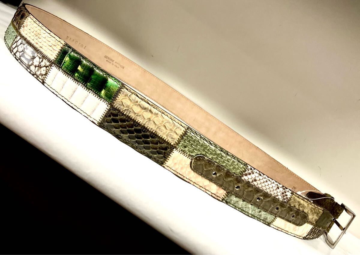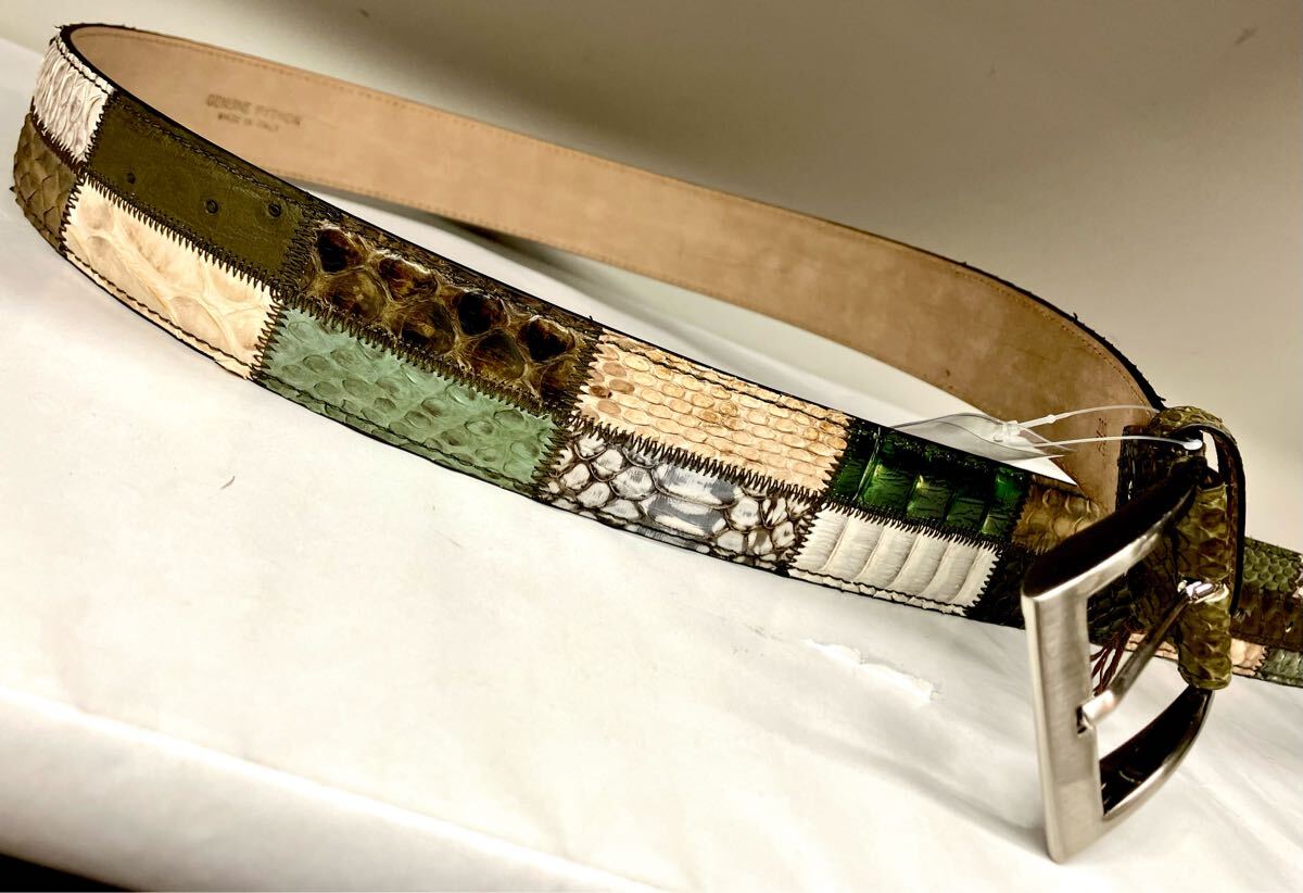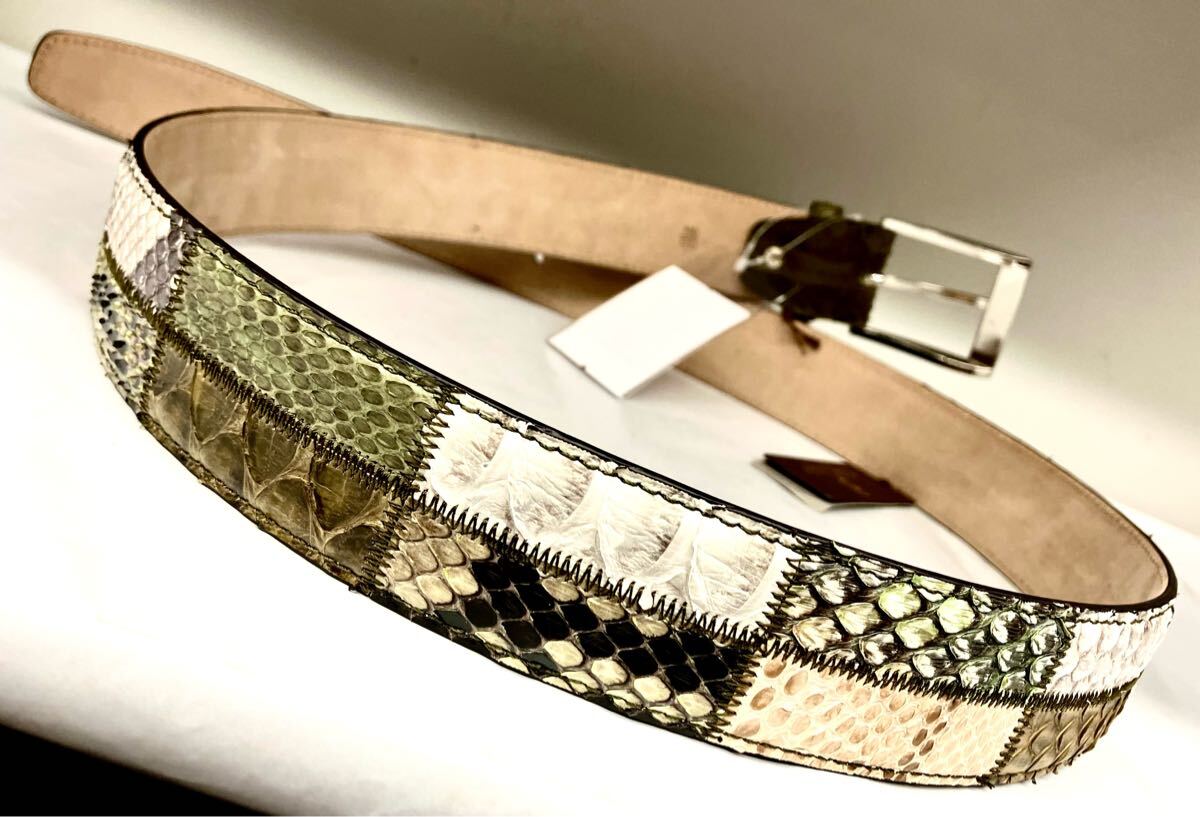 イタリア製、ダイヤモンドパイソン錦蛇革使いの40mm幅フリーサイズベルトです。