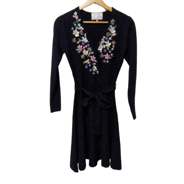 デザイン:Vネック/長袖/ひざ丈/ニット/フラワー(花)/スパンコール/ラインストーン/パール