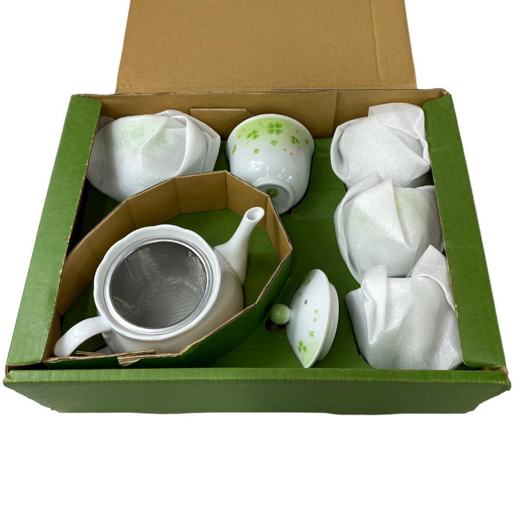 yn15 有田焼 聖龍釜 急須 湯呑5客セット 四つ葉のクローバー