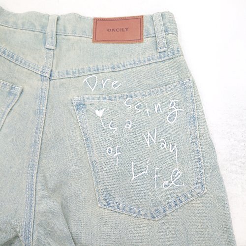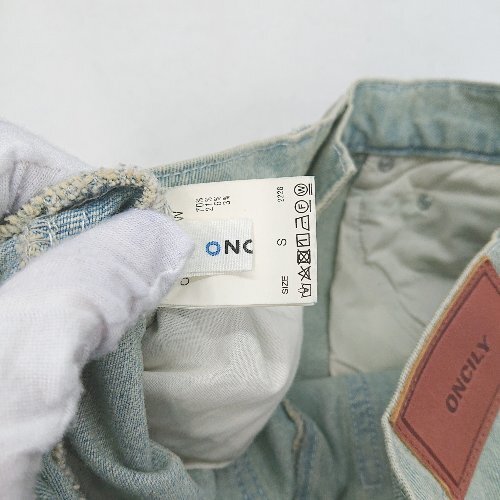 ◇ Θ ONCILY オンシェリー ポケットロゴ刺繍 デニムワイドパンツ サイズS ブルー系 レディース E
