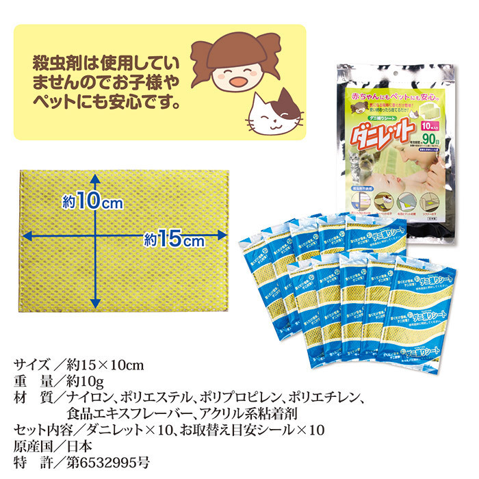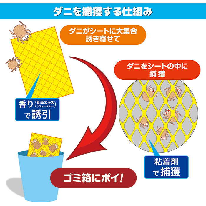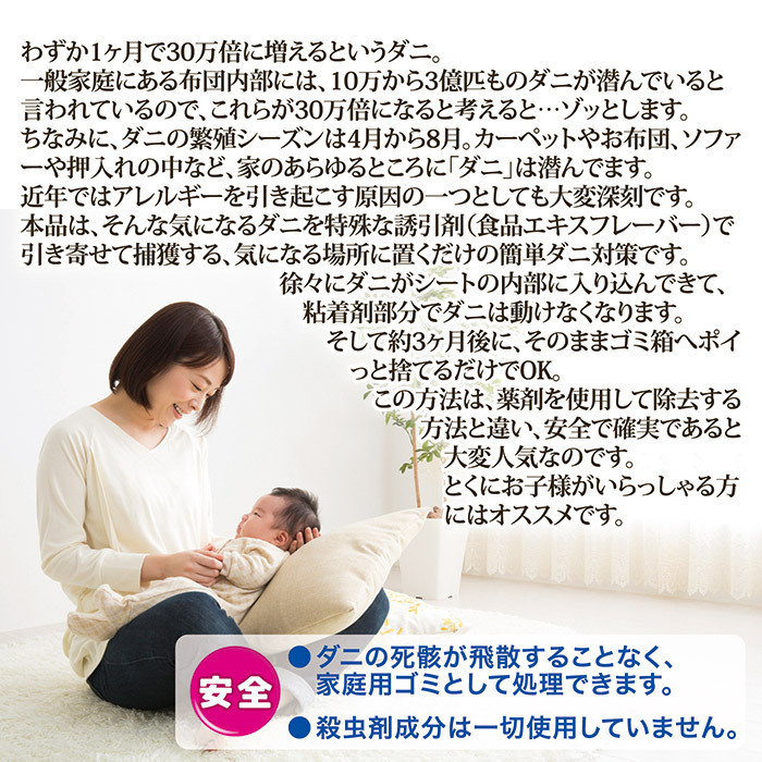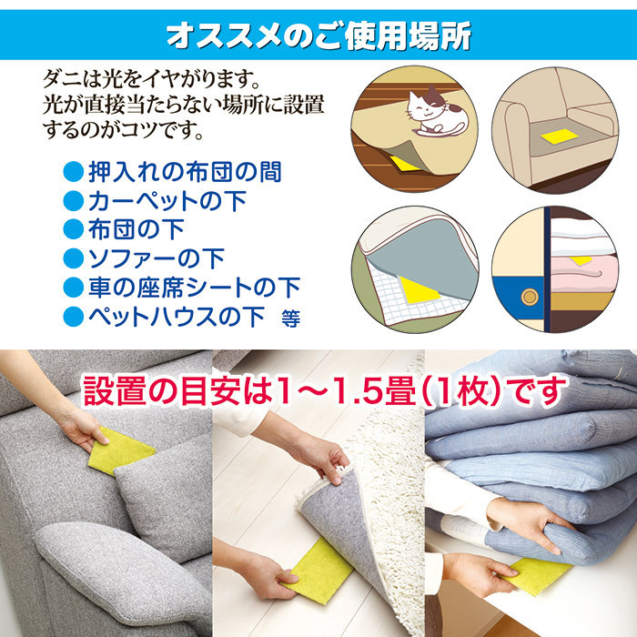 ダニ捕りシート ダニ取り ダニ対策 ソファ 布団 押入れ カーペット ラグ 絨毯 敷物 マット 車 誘引 安全 赤ちゃん 無害 ペット アレルギー