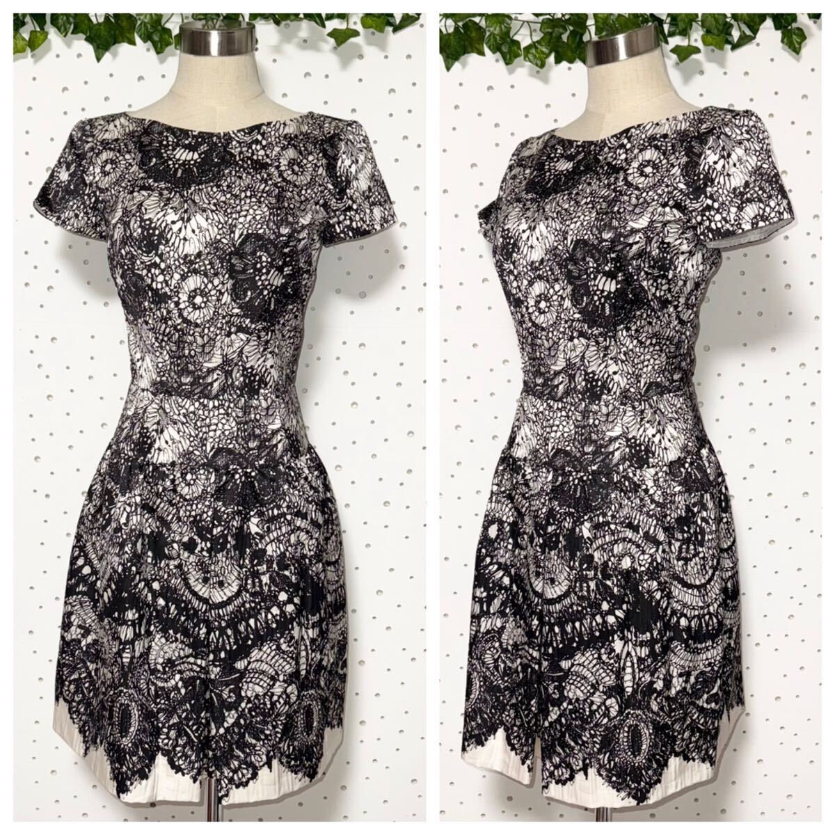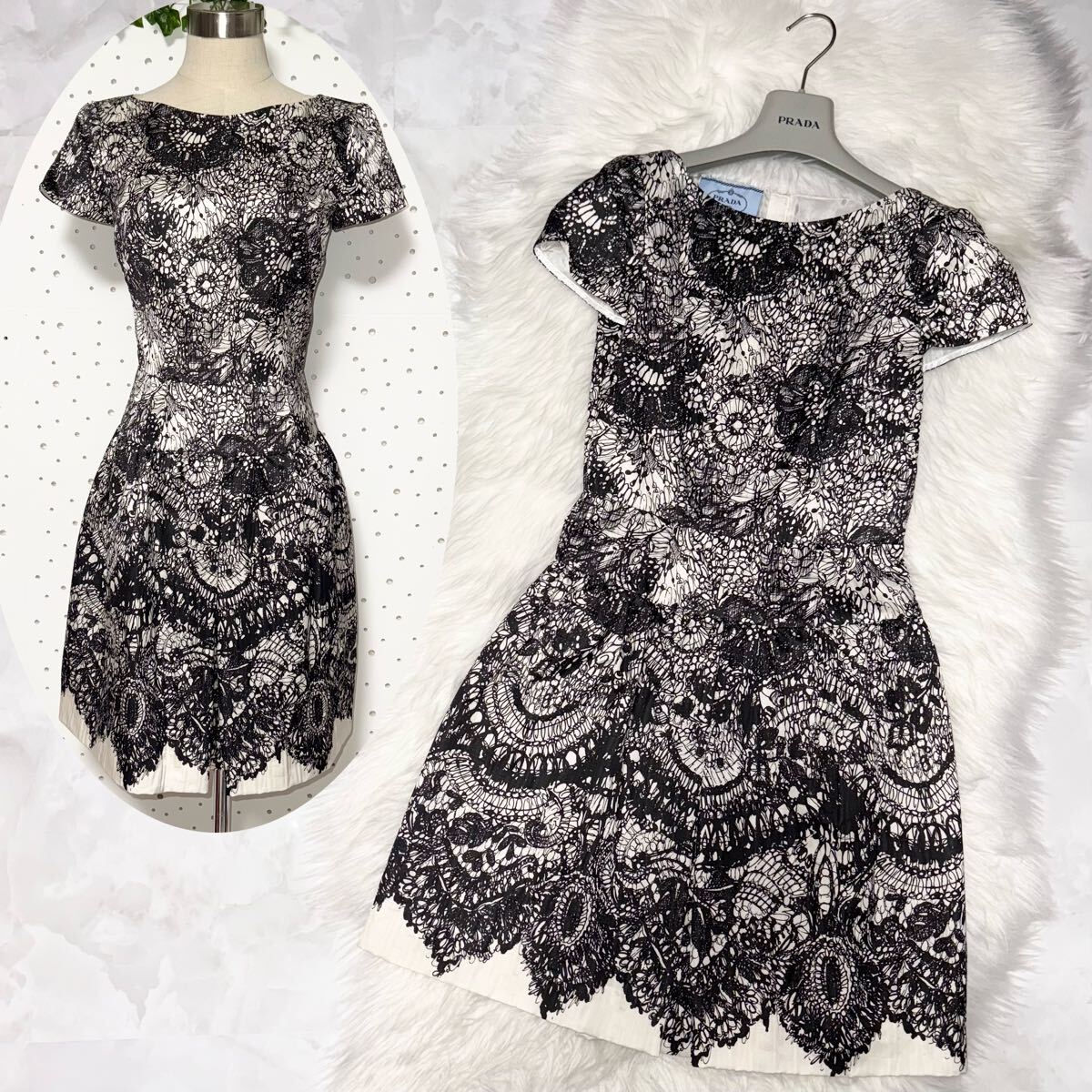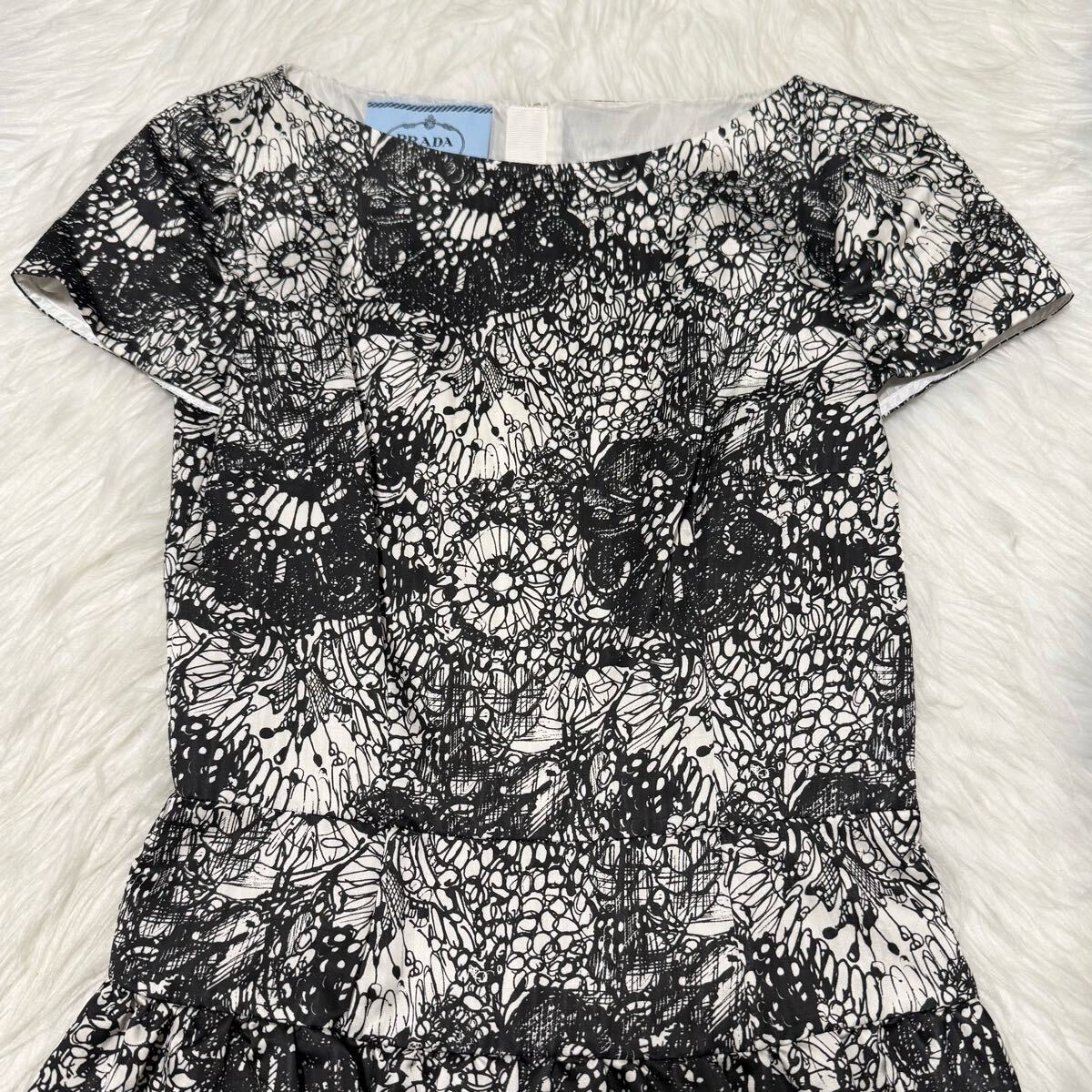 | 本物 プラダ フラワー レースプリント アートデザイン 半袖 ワンピース ドレス 36 ブラック×ホワイト系 黒×白系 PRADA レターパック可 | |||